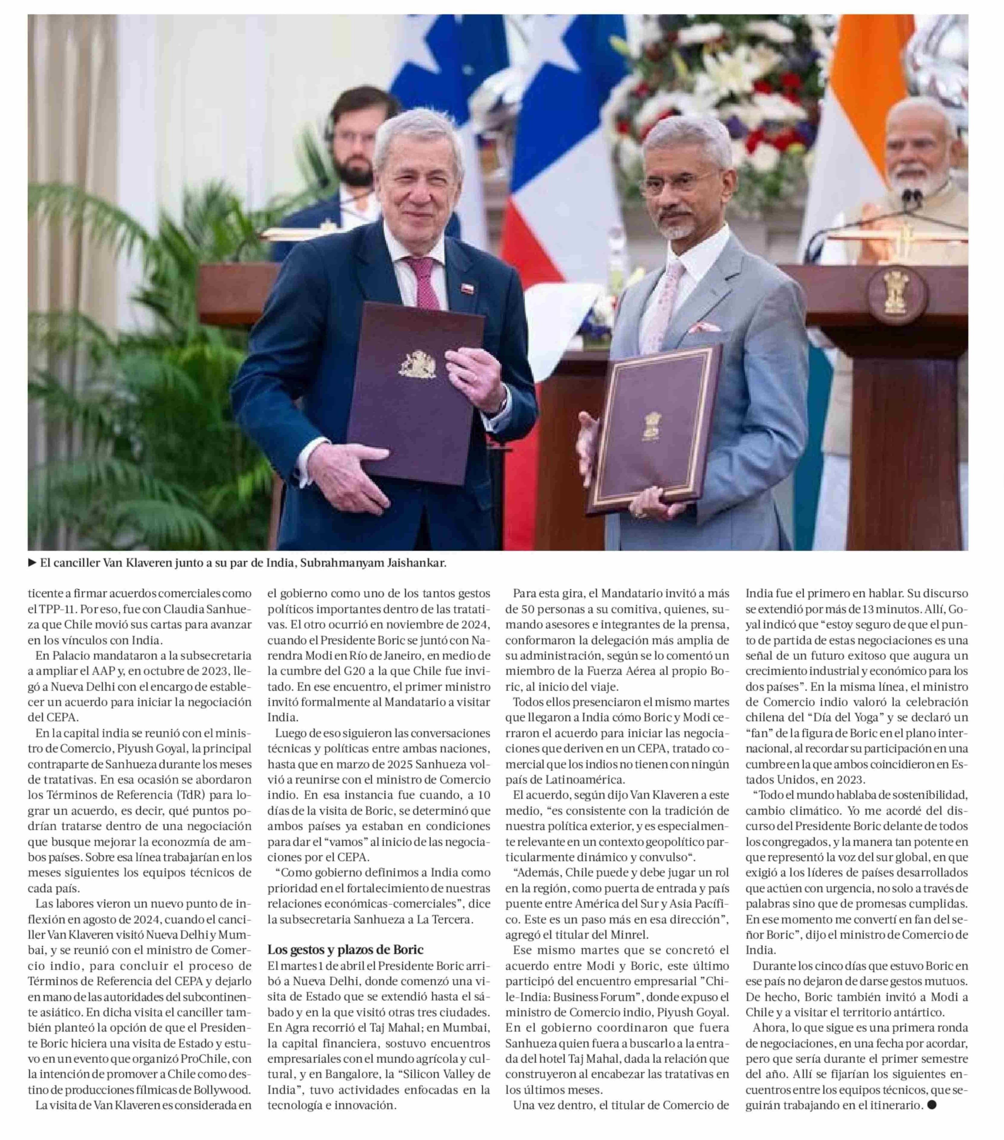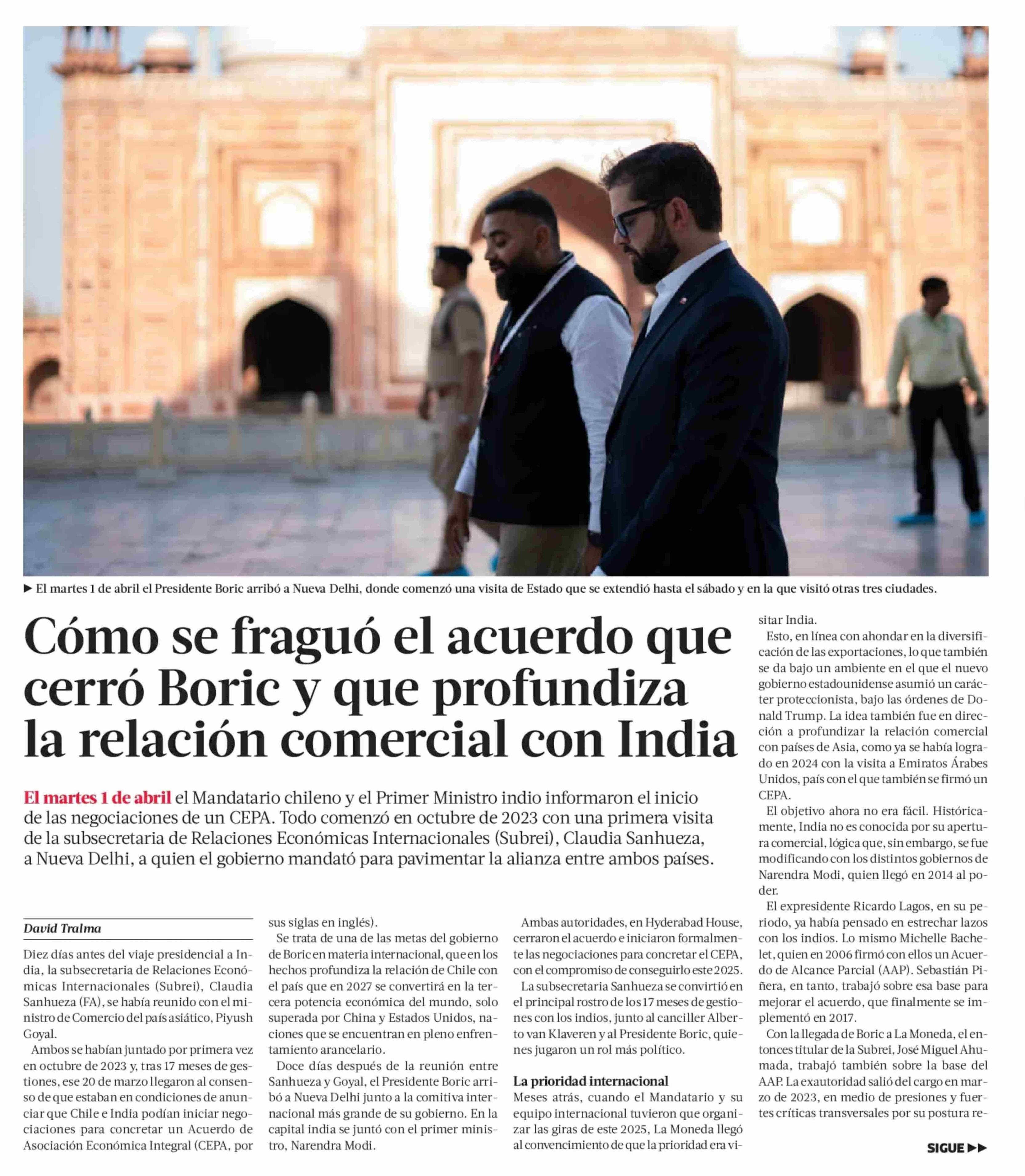 Cómo se fraguó el acuerdo que cerró Boric y que profundiza la relación comercial con India 07-04-2025 La Tercera |