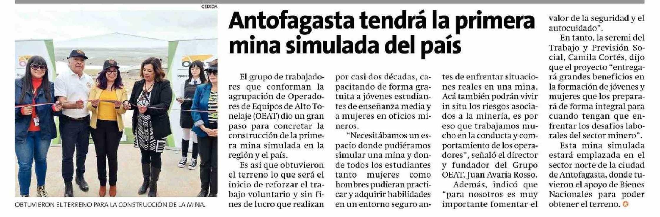 Antofagasta tendrá la primera mina simulada del país 31-05-2024 La Estrella Del Loa |