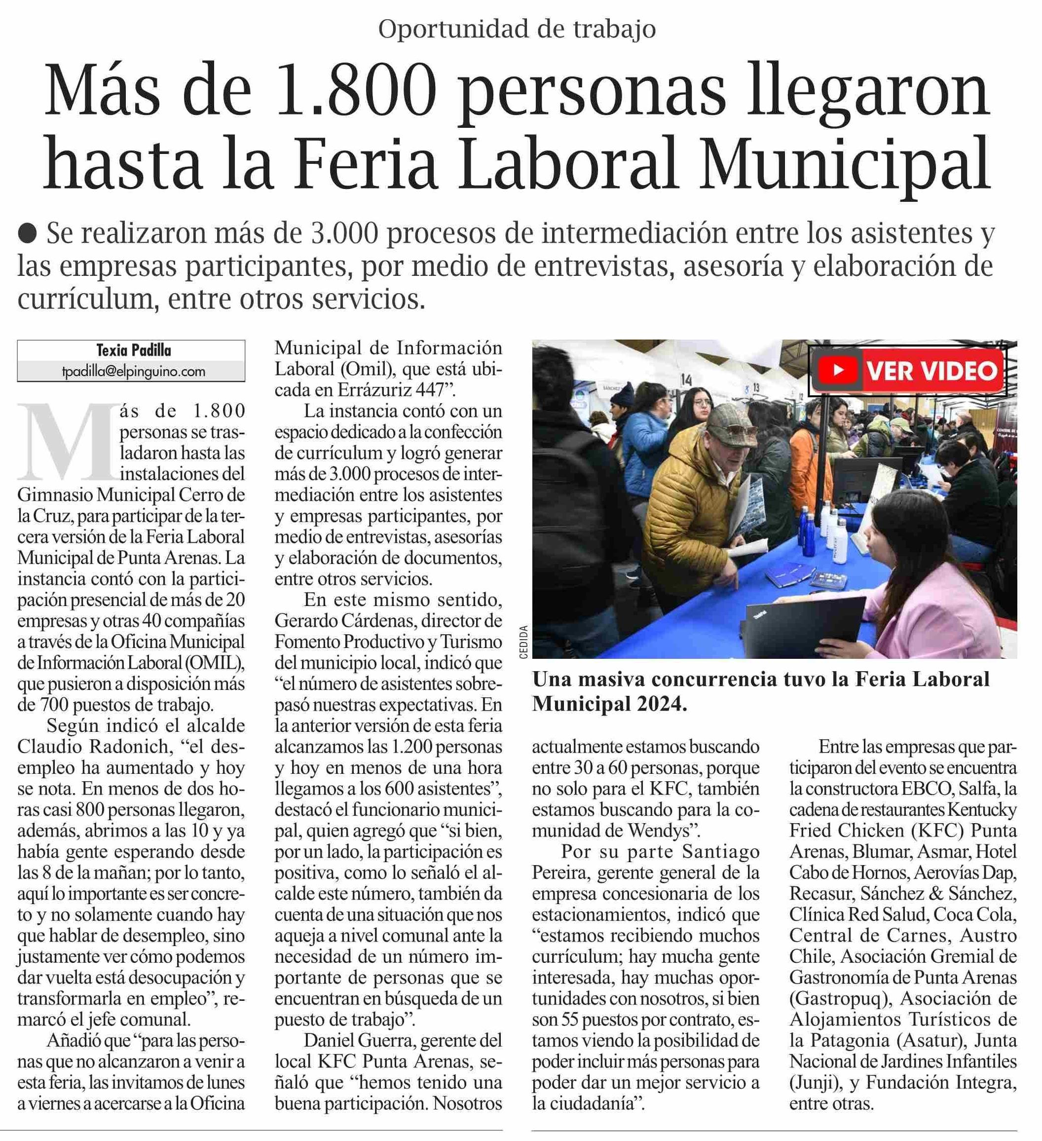 Más de 1.800 personas llegaron hasta la Feria Laboral Municipal 07-09-2024 El Pingüino |