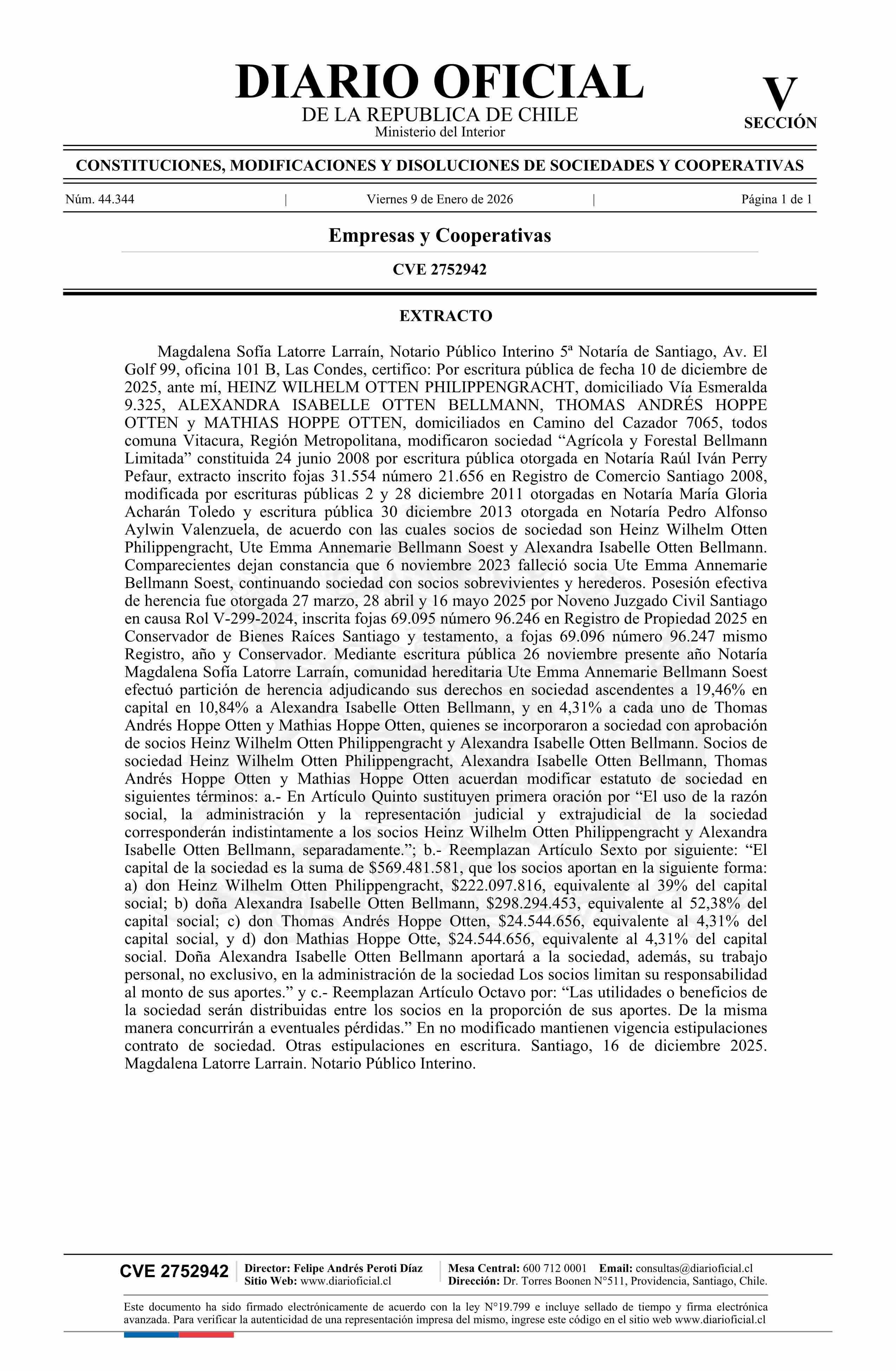 Agrícola y Forestal Bellmann Limitada 76.031.197-9 09-01-2026 Diario Oficial Edición Electrónica |