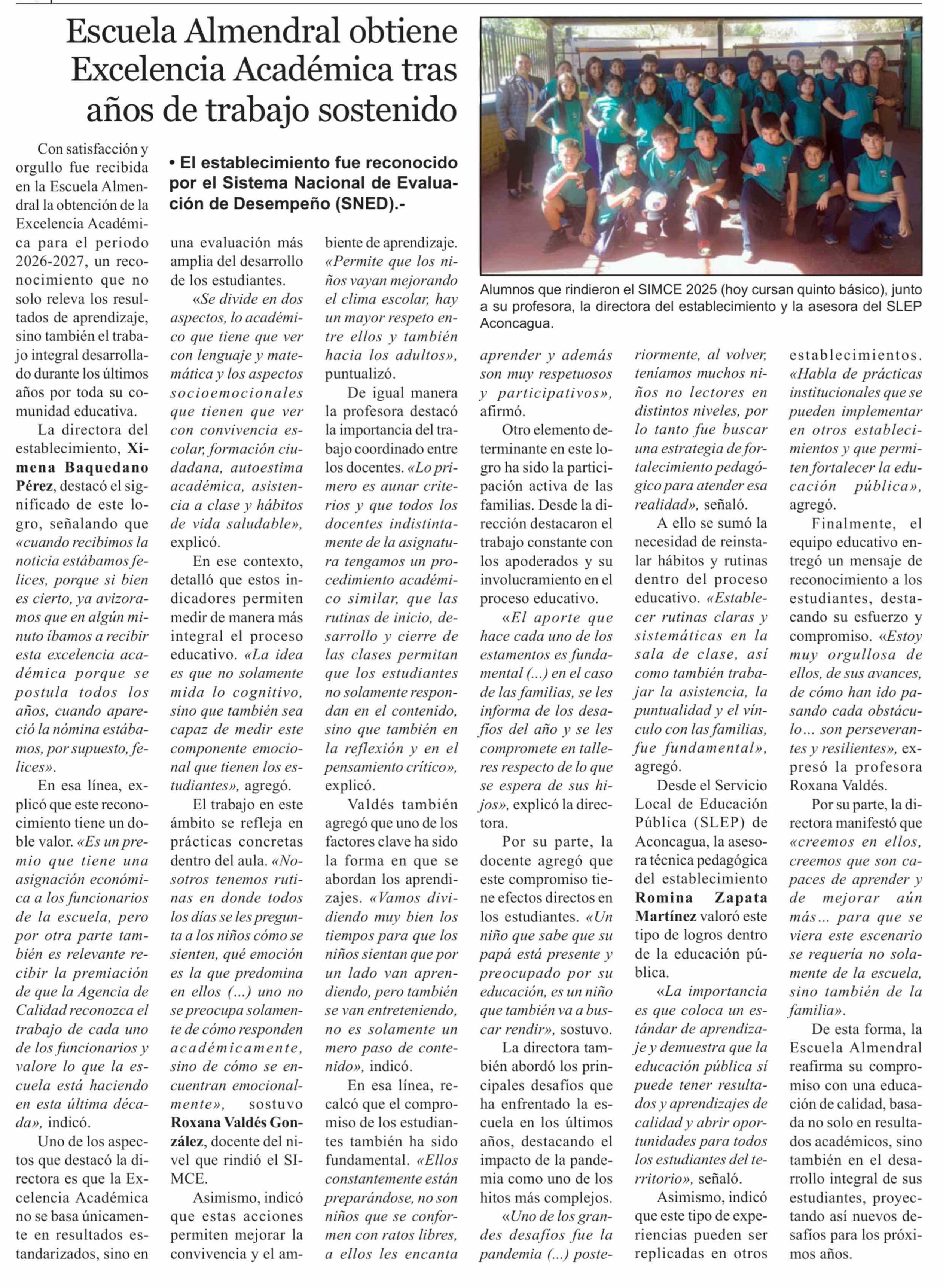 | Título: | Escuela Almendral obtiene Excelencia Académica tras años de trabajo sostenido |