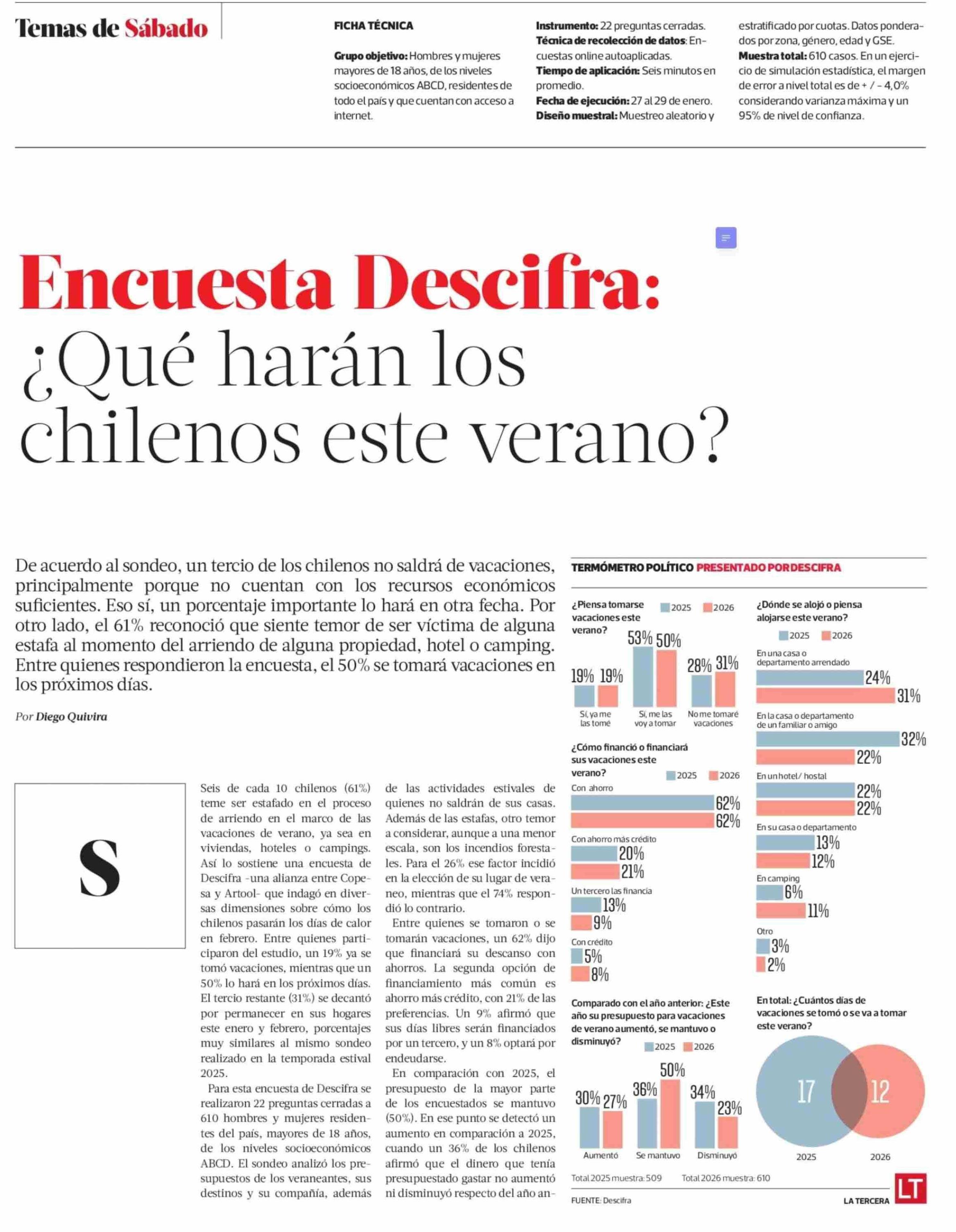 Encuesta Desciíra: ¿Qué harán los | chilenos este verano? 31-01-2026 La Tercera |