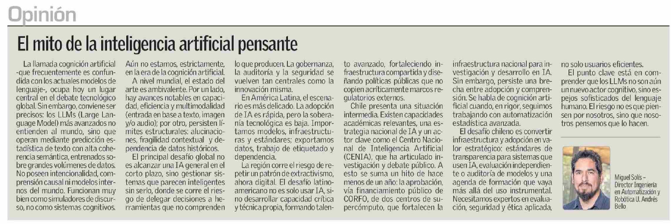 Título: COLUMNAS DE OPINIÓN: El mito de la inteligencia artificial pensante
