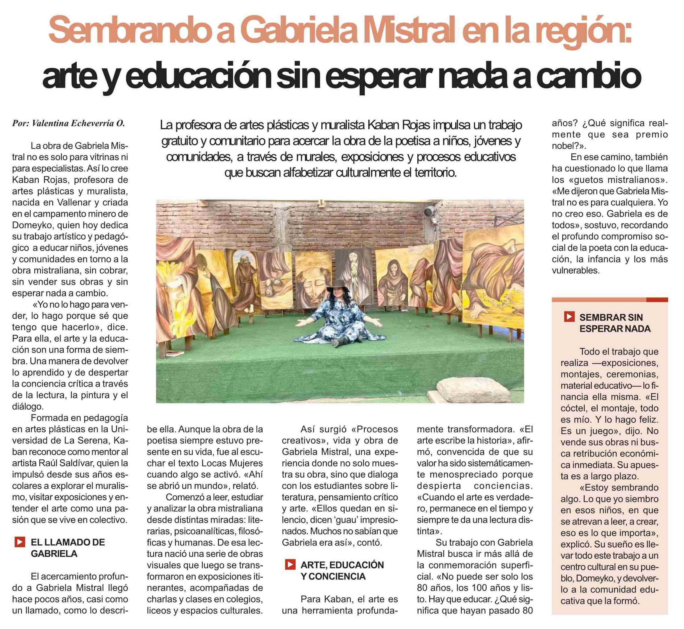 Sembrando a Gabriela Mistral en la región: arte y educación sin esperar nada a cambio