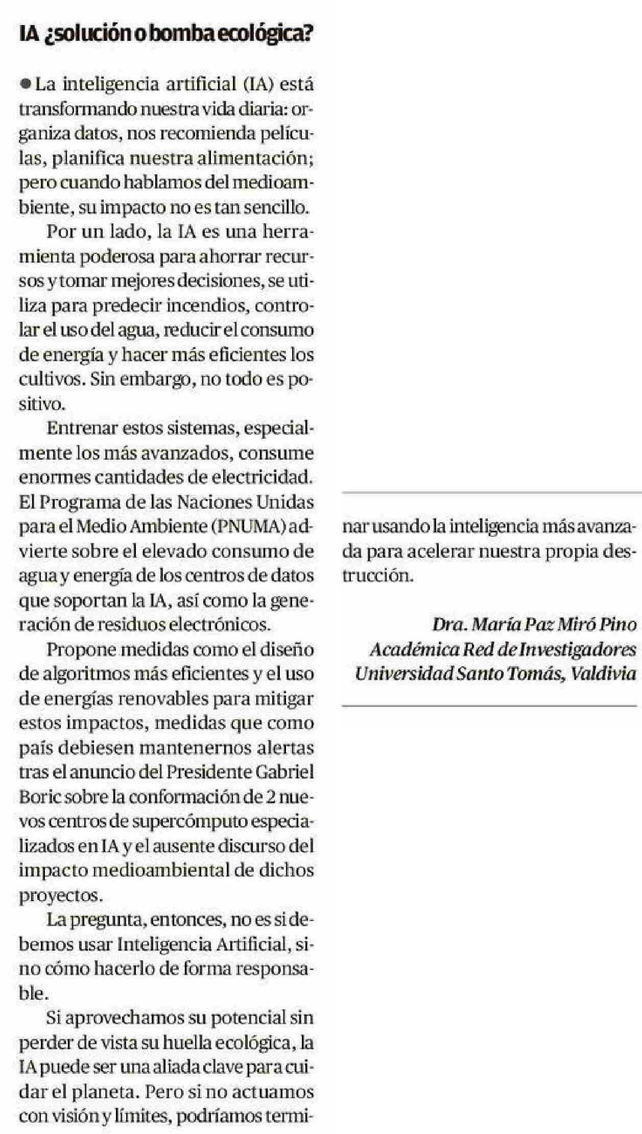 CARTAS: lA ¿solución o bomba ecológica? 06-06-2025 Diario Austral Región de Los Ríos |