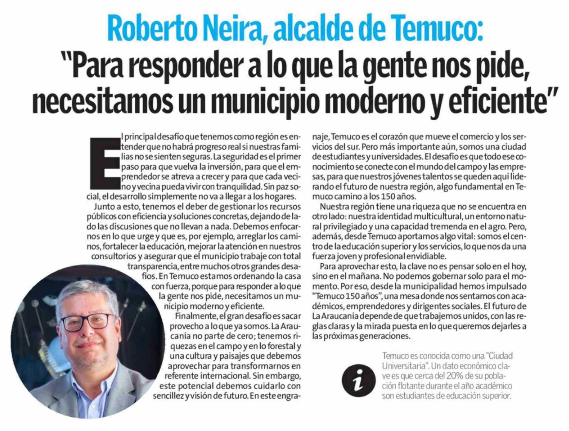 Columnas de Opinión: "Para responder a lo que la gente nos pide, necesitamos un municipio moderno y eficiente" 30-03-2026 El Austral de la Araucanía |