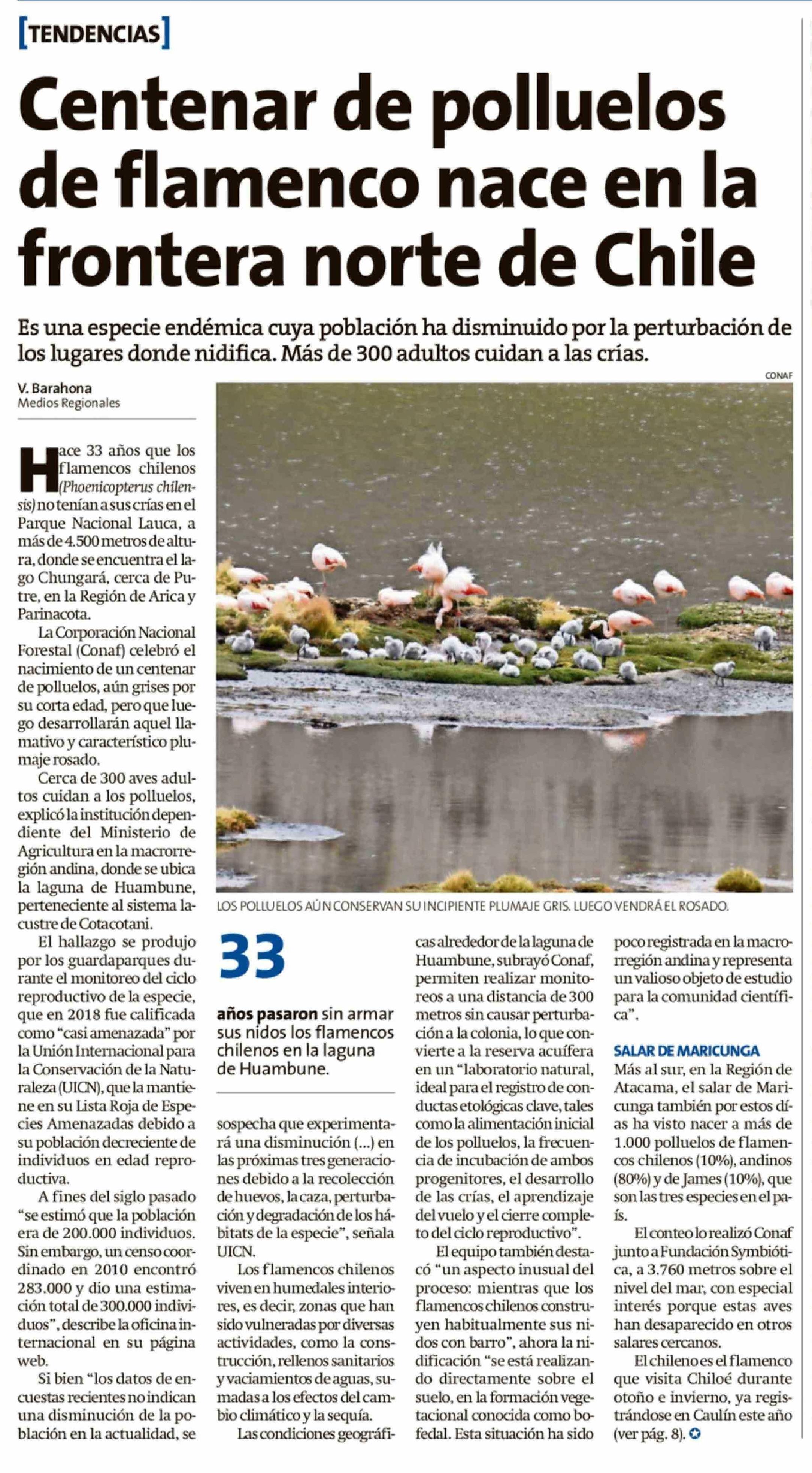 Centenar de polluelos de flamenco nace en la frontera norte de Chile 22-03-2026 La Estrella de Chiloé |