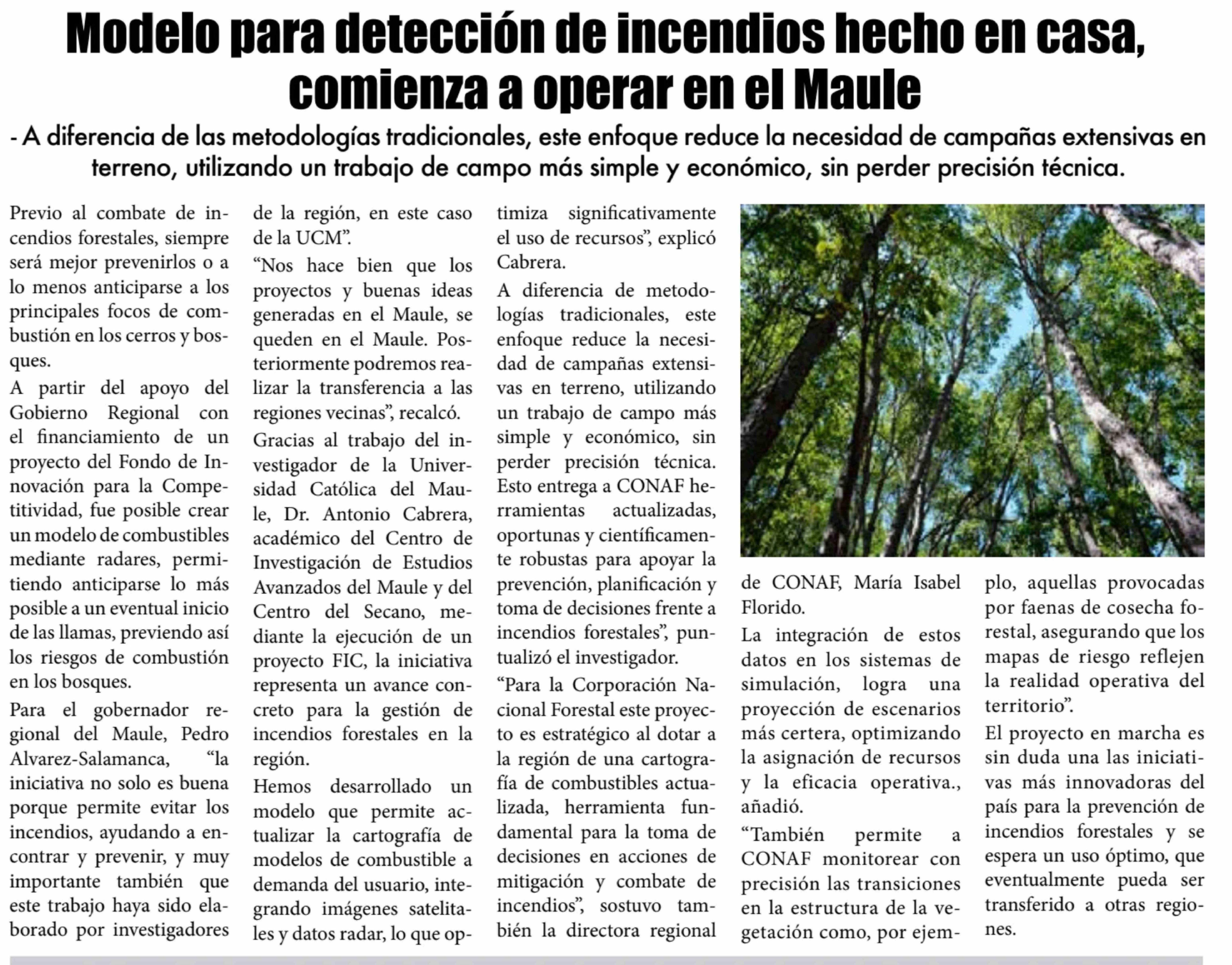 | Título: | Modelo para detección de incendios hecho en casa, comienza a operar en el Maule |