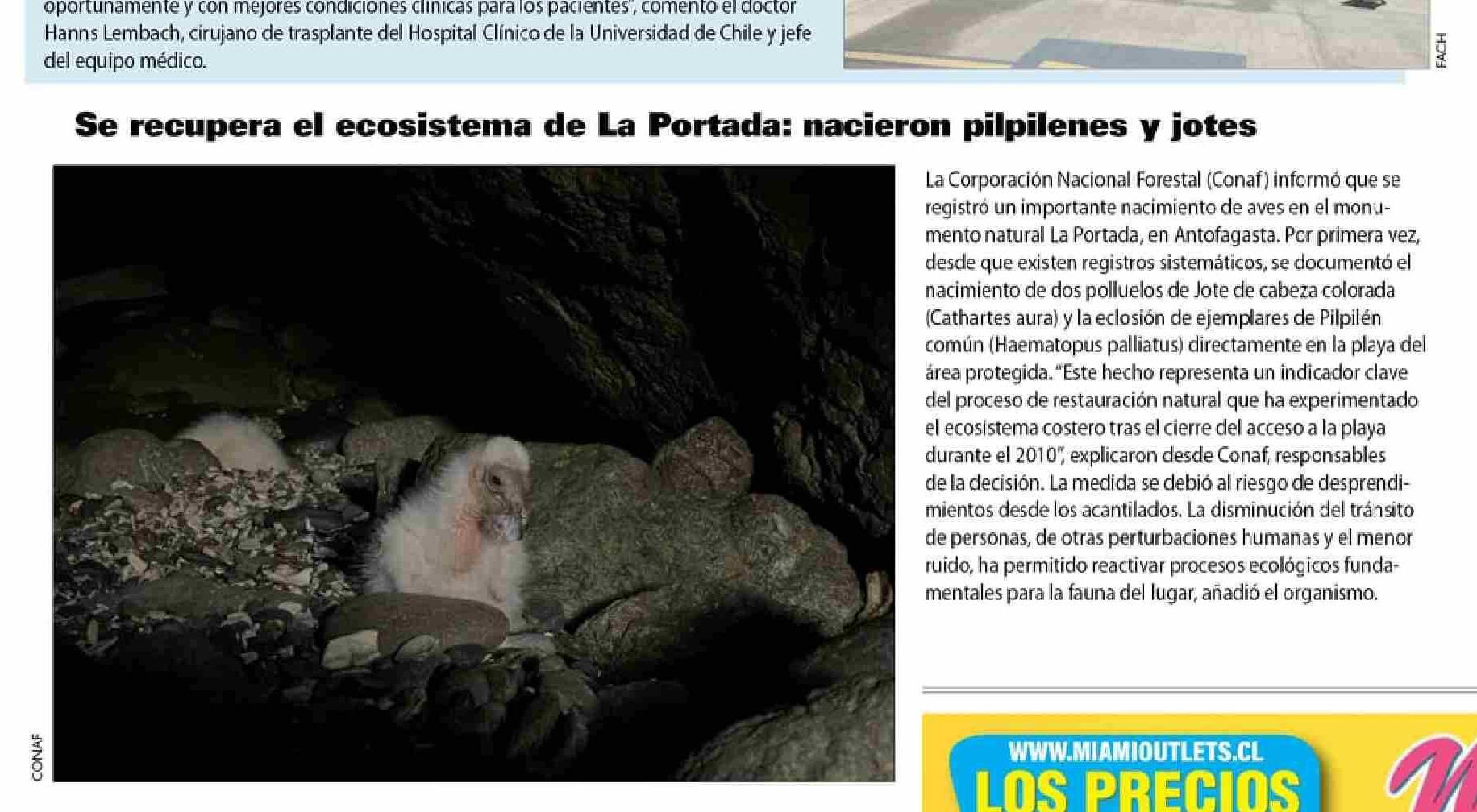 | Título: | Se recupera el ecosistema de La Portada: nacieron pilpilenes y jotes |