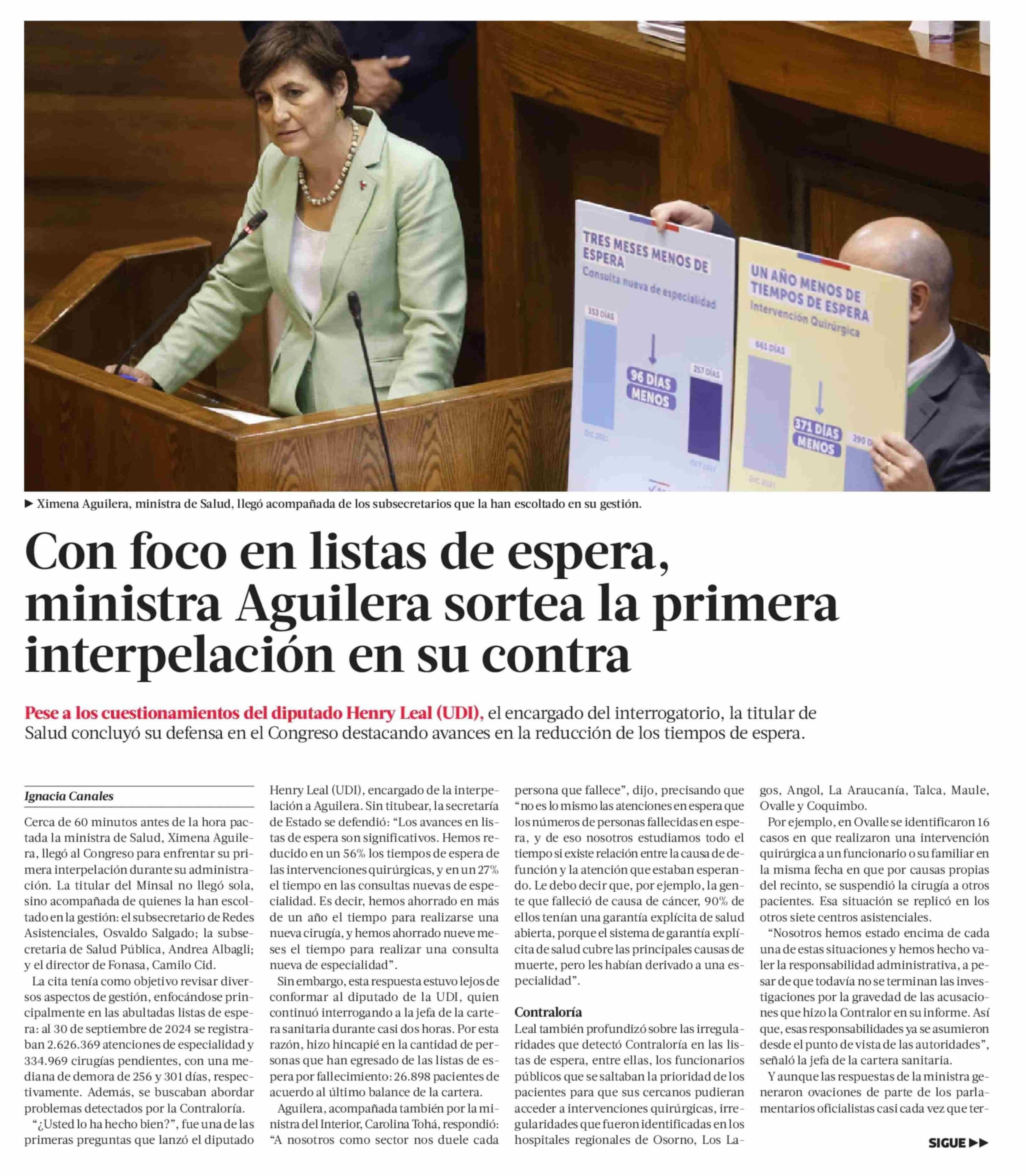 Con foco en listas de espera, ministra Aguilera sortea la primera interpelación en su contra 23-01-2025 La Tercera |