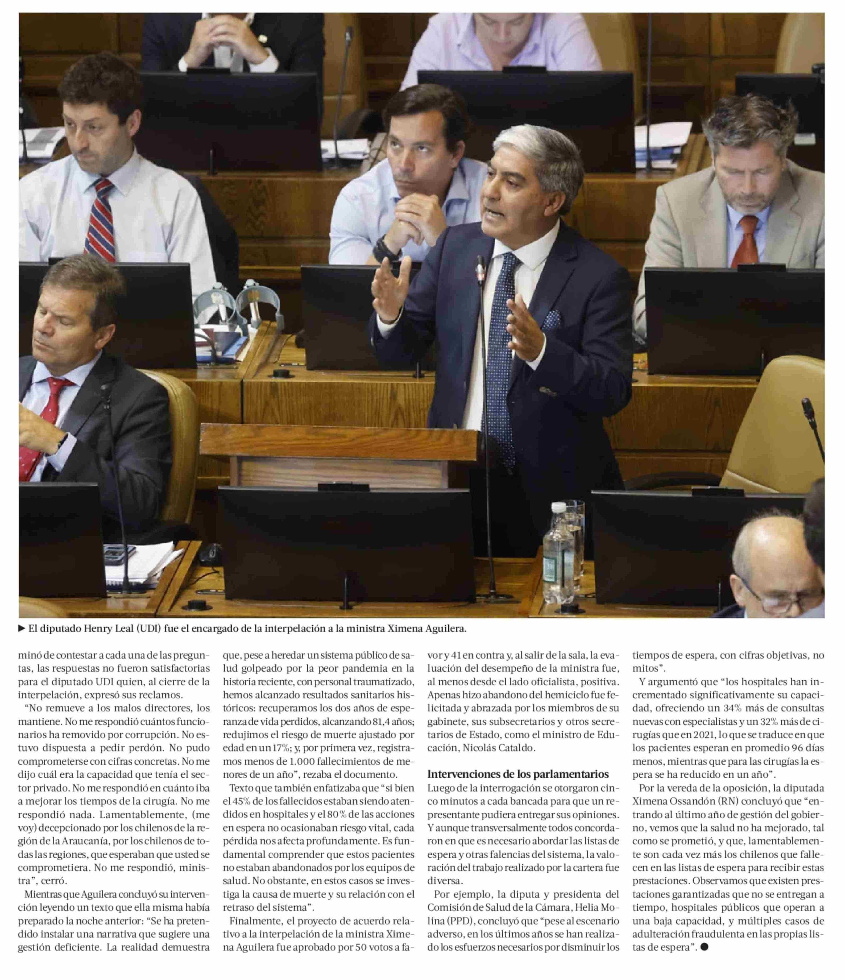 | Título: | Con foco en listas de espera, ministra Aguilera sortea la primera interpelación en su contra |