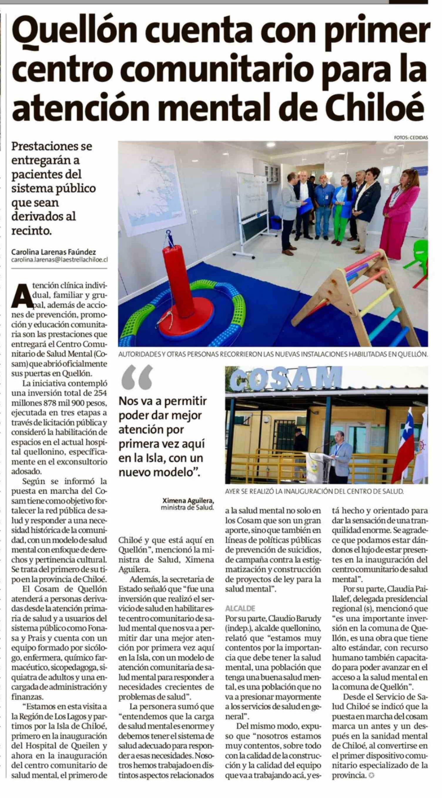 Título: Quellón cuenta con primer centro comunitario para la atención mental de Chiloé