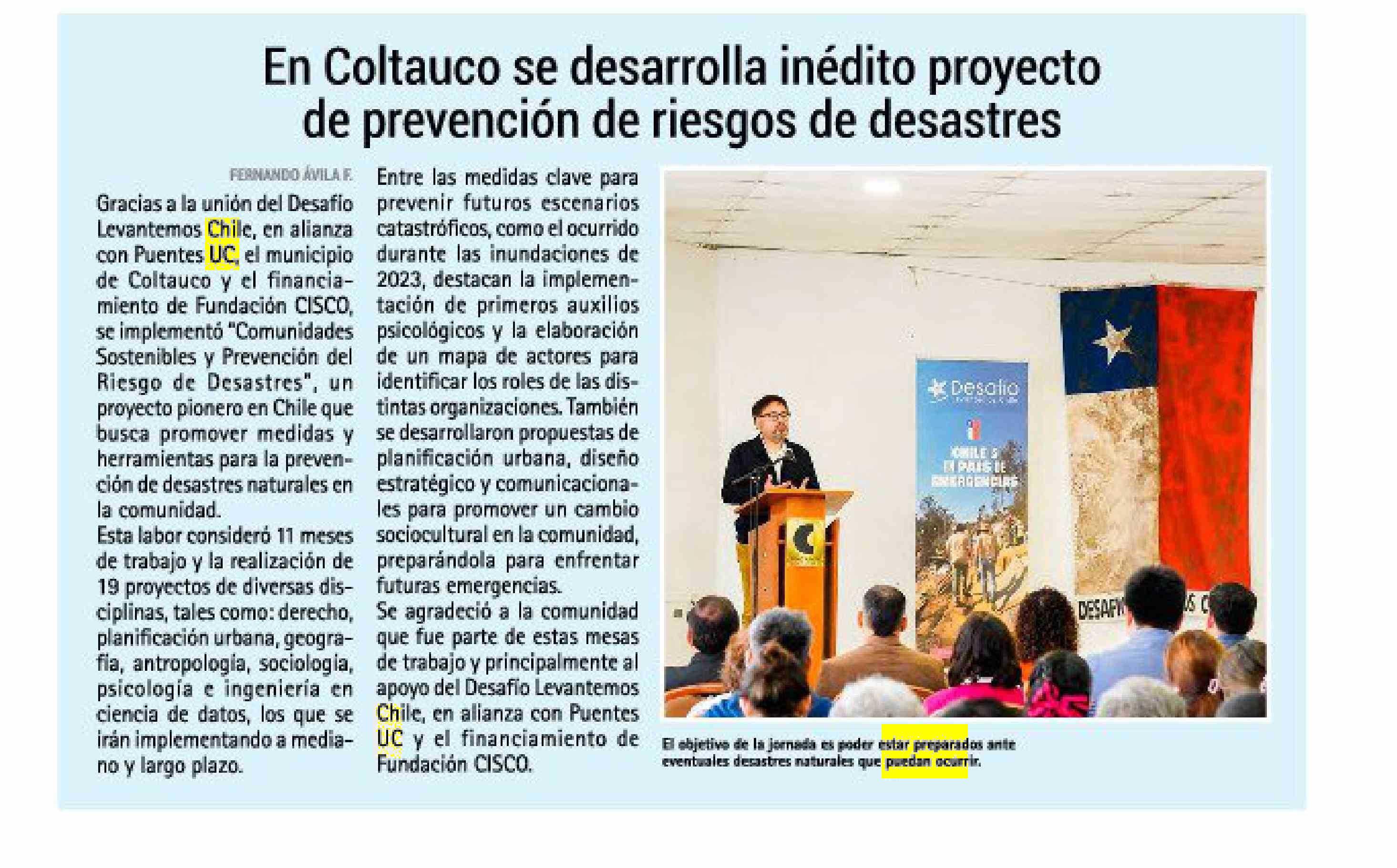 | Título: | En Coltauco se desarrolla inédito proyecto de prevención de riesgos de desastres |