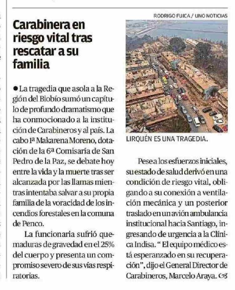 Título: Carabinera en riesgo vital tras rescatar a su familia