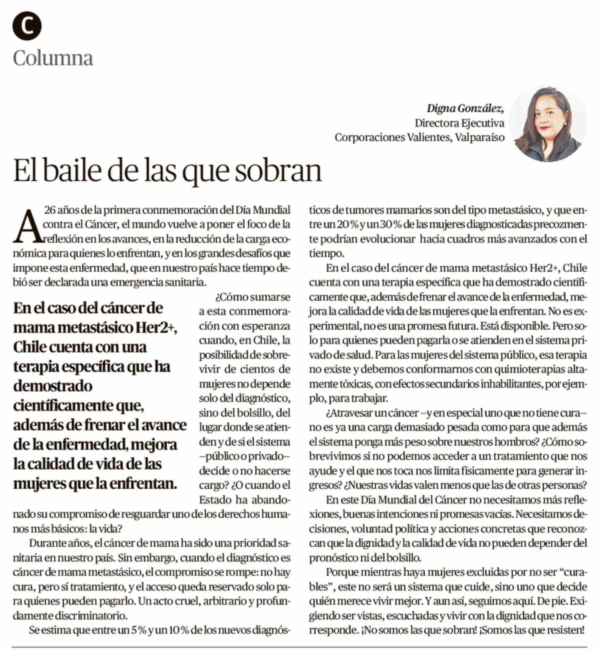 Columnas de Opinión: El baile de las que sobran 08-02-2026 Crónica de Chillán |