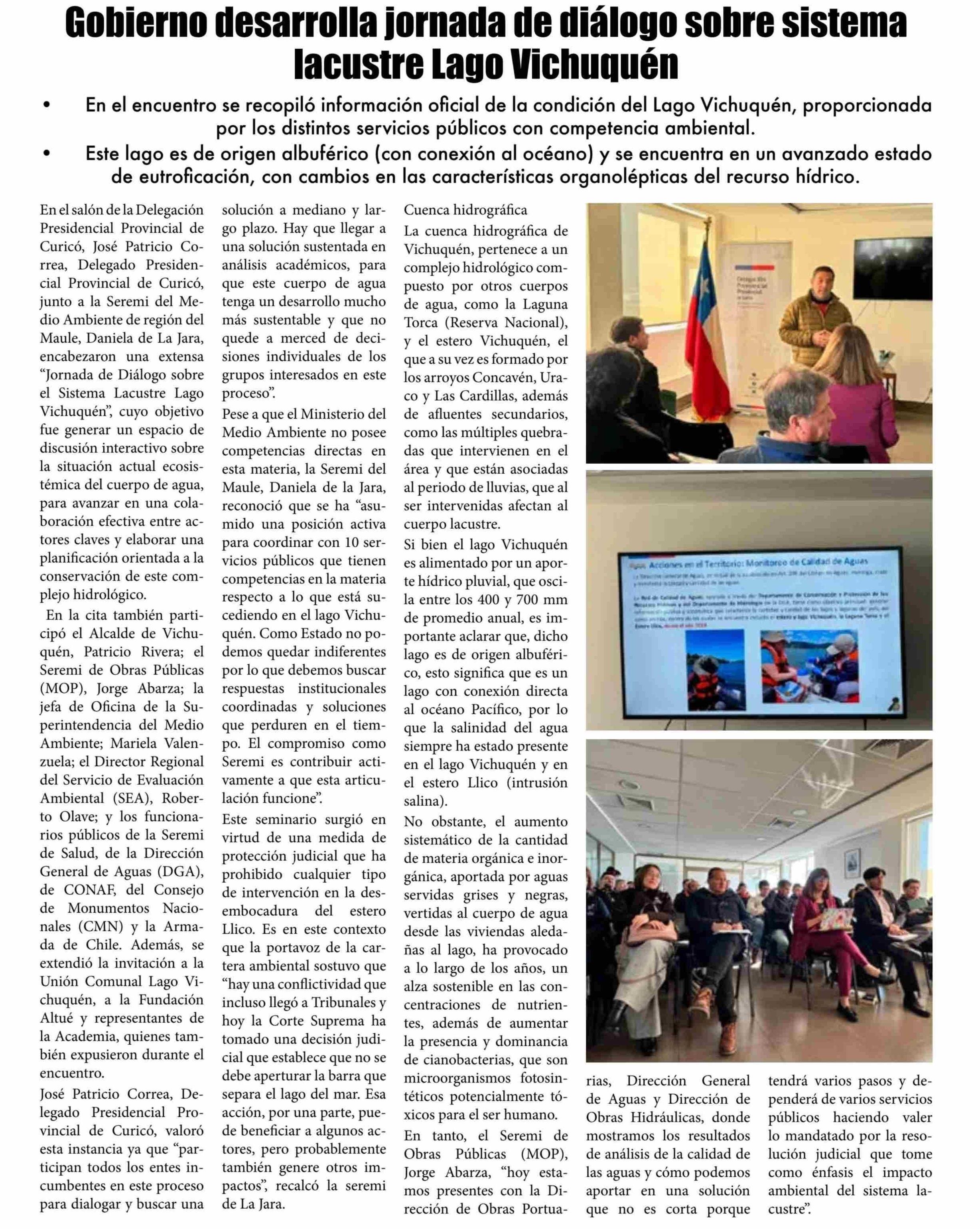 | Título: | Gobierno desarrolla jornada de diálogo sobre sistema lacustre Lago Vichuquén |