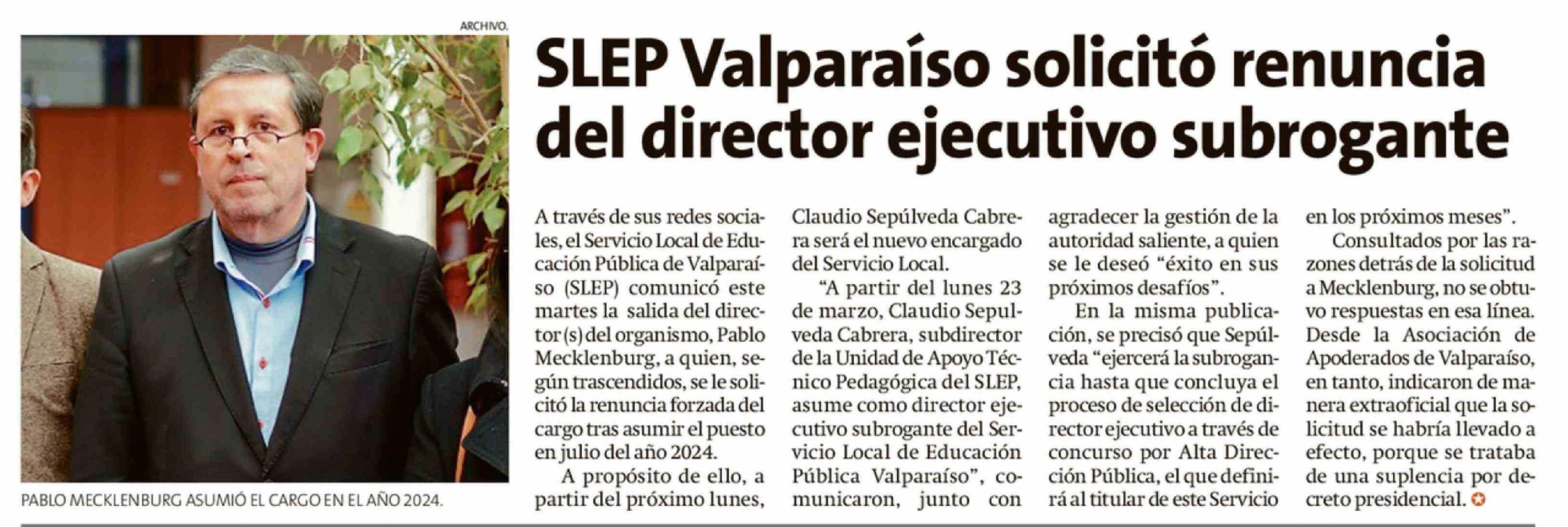 Título: SLEP Valparaíso solicitó renuncia del director ejecutivo subrogante