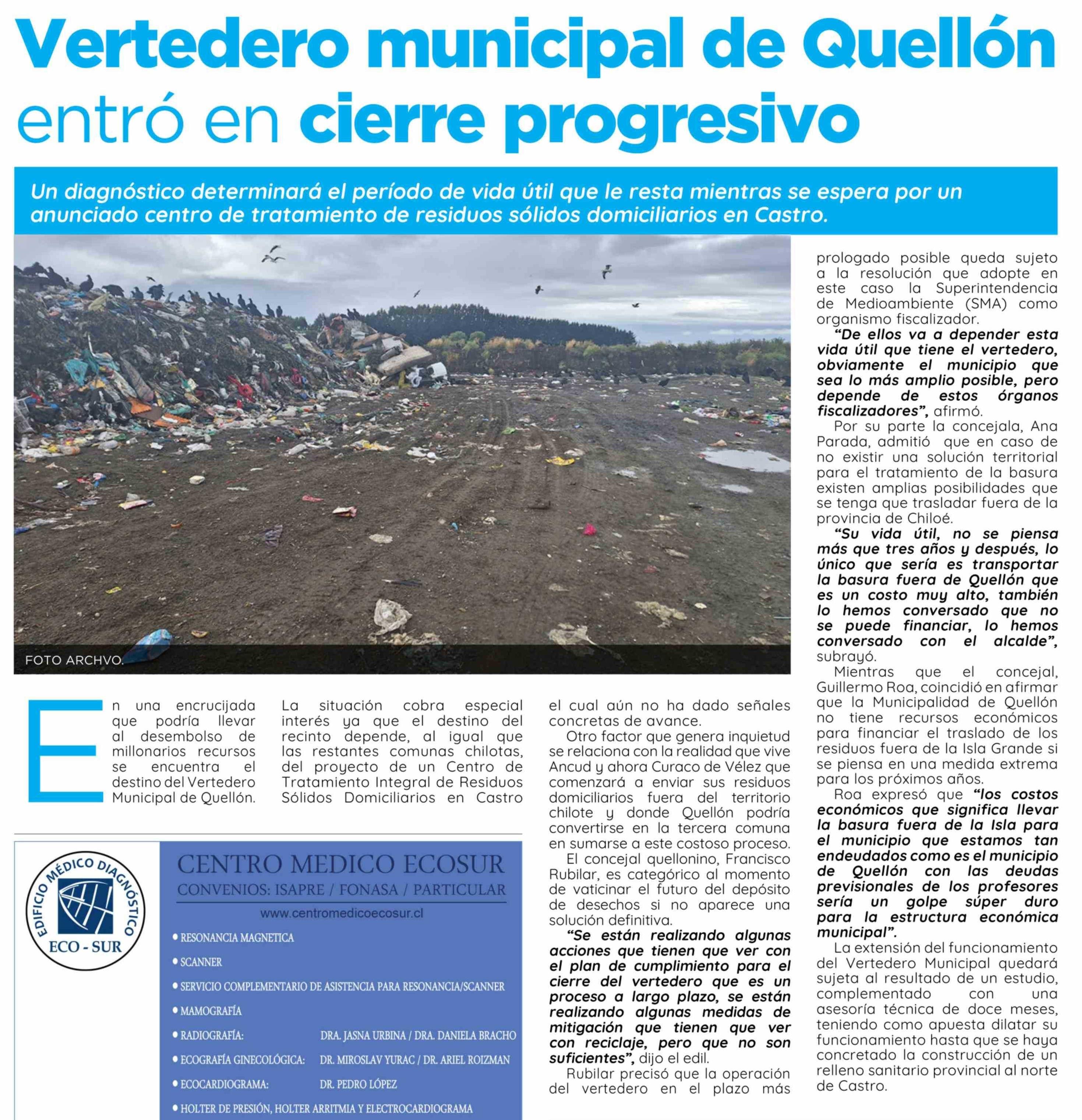 Título: Vertedero municipal de Quellón entró en cierre progresivo