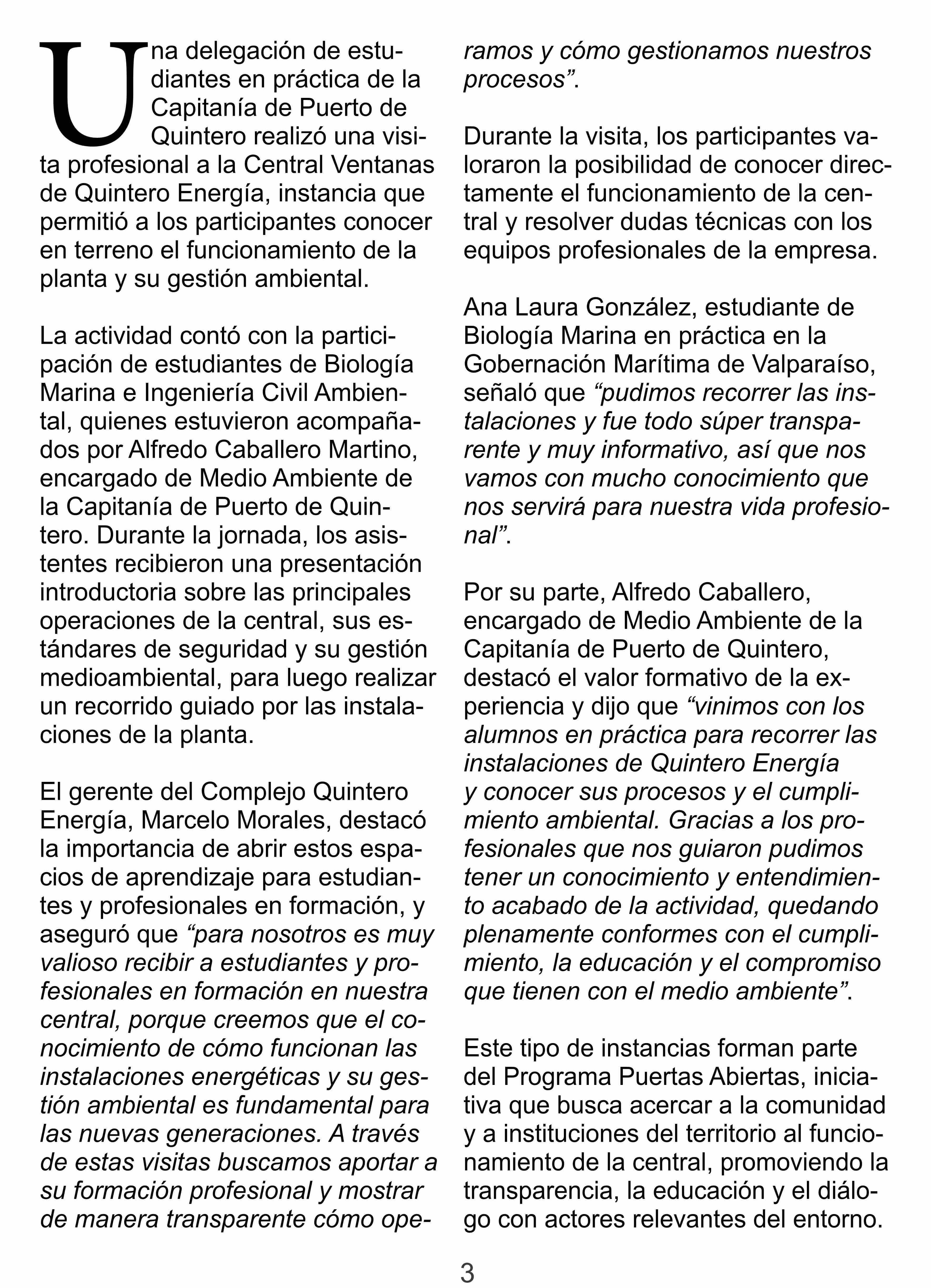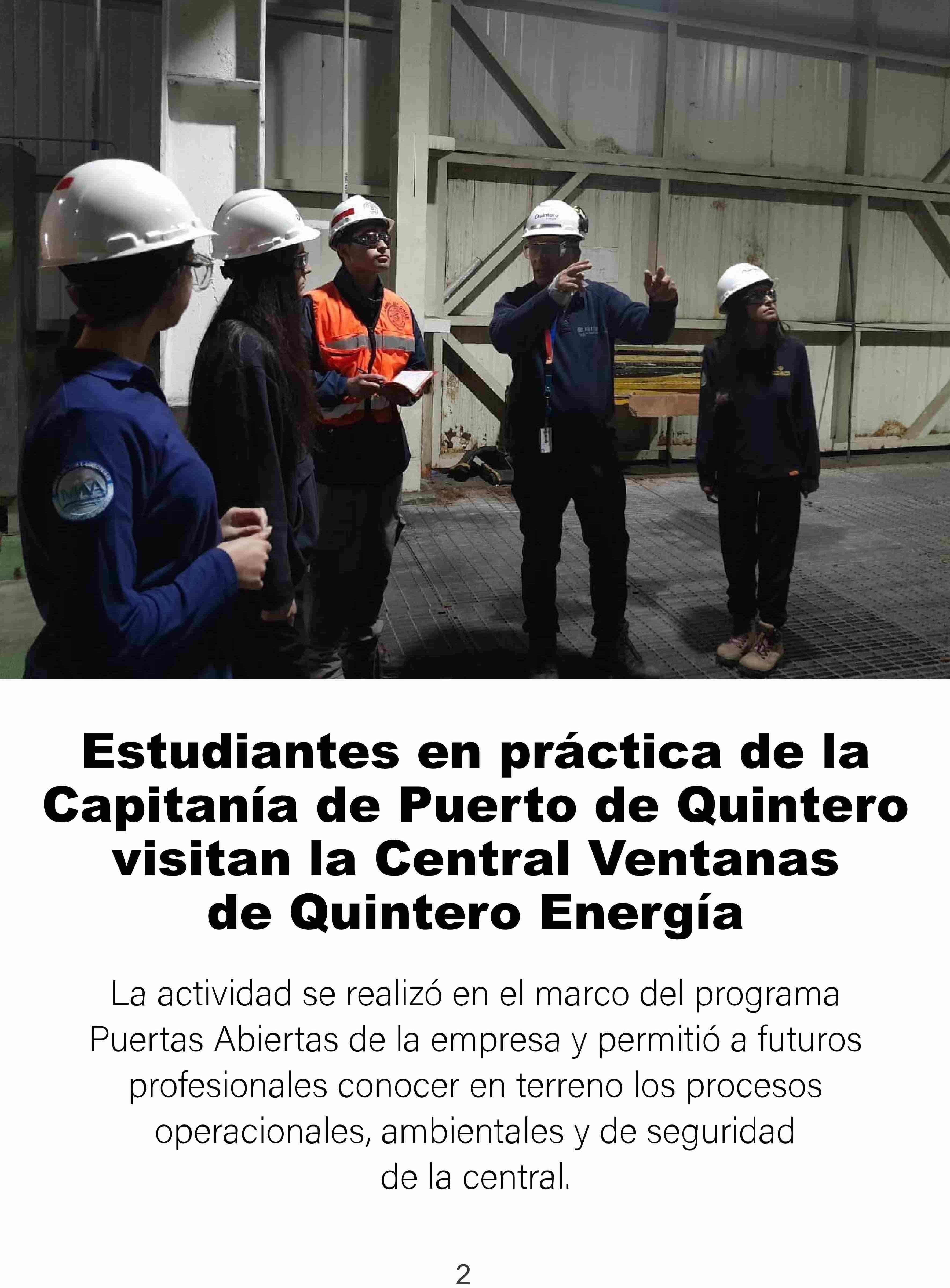 Título: Estudiantes en práctica de la Capitanía de Puerto de Quintero visitan la Central Ventanas de Quintero Energía