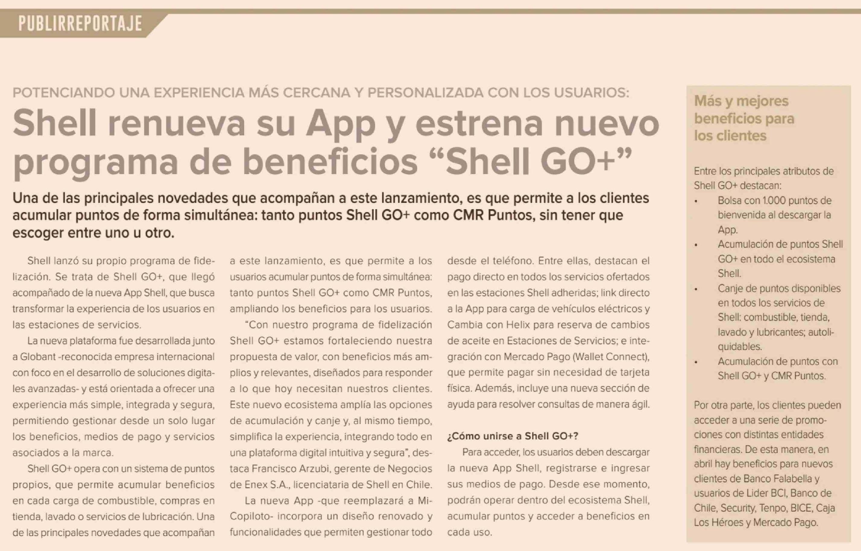 Shell renueva su App y estrena nuevo programa de beneficios "Shell GO+" 10-04-2026 Diario Financiero |