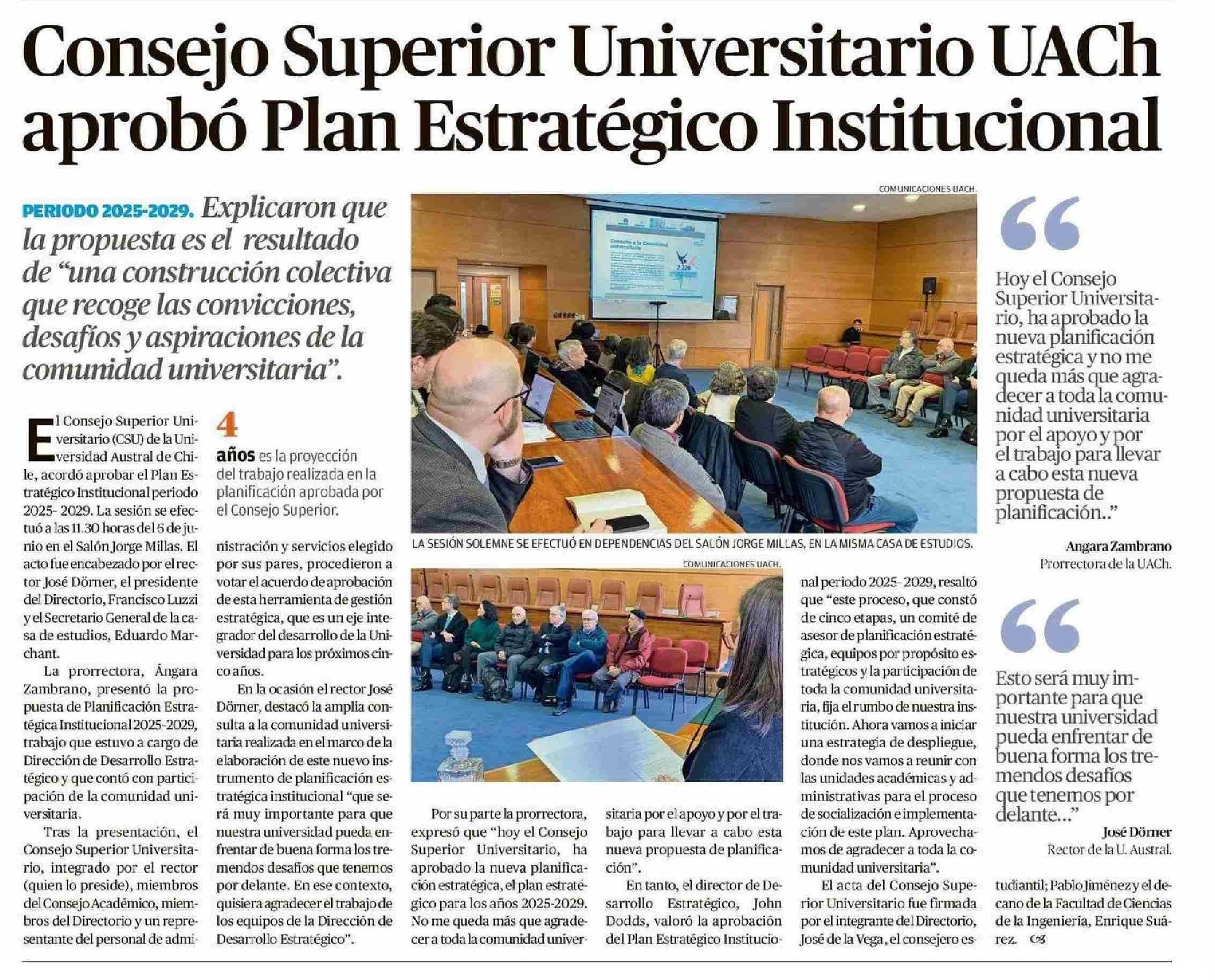 Consejo Superior Universitario UACh aprobó Plan Estratégico Institucional 11-06-2025 Diario Austral Región de Los Ríos |