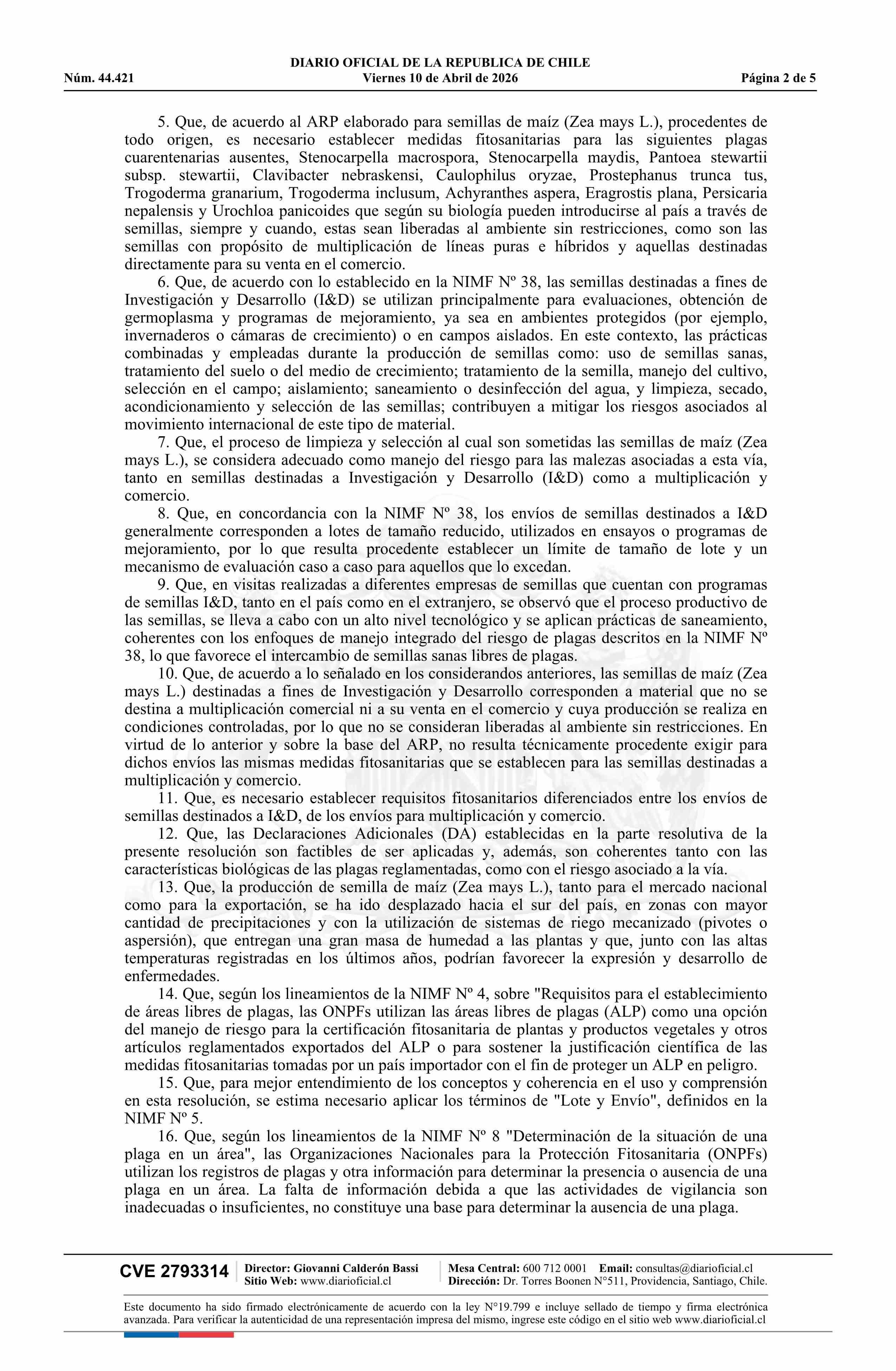 Título: Resolución exenta número 2.554, de 2026.- Establece requisitos fitosanitarios de importación para el ingreso de semillas de maíz (Zea mays L.) procedentes de todo origen y modifica resolución N° 1.187 exenta, de 2022