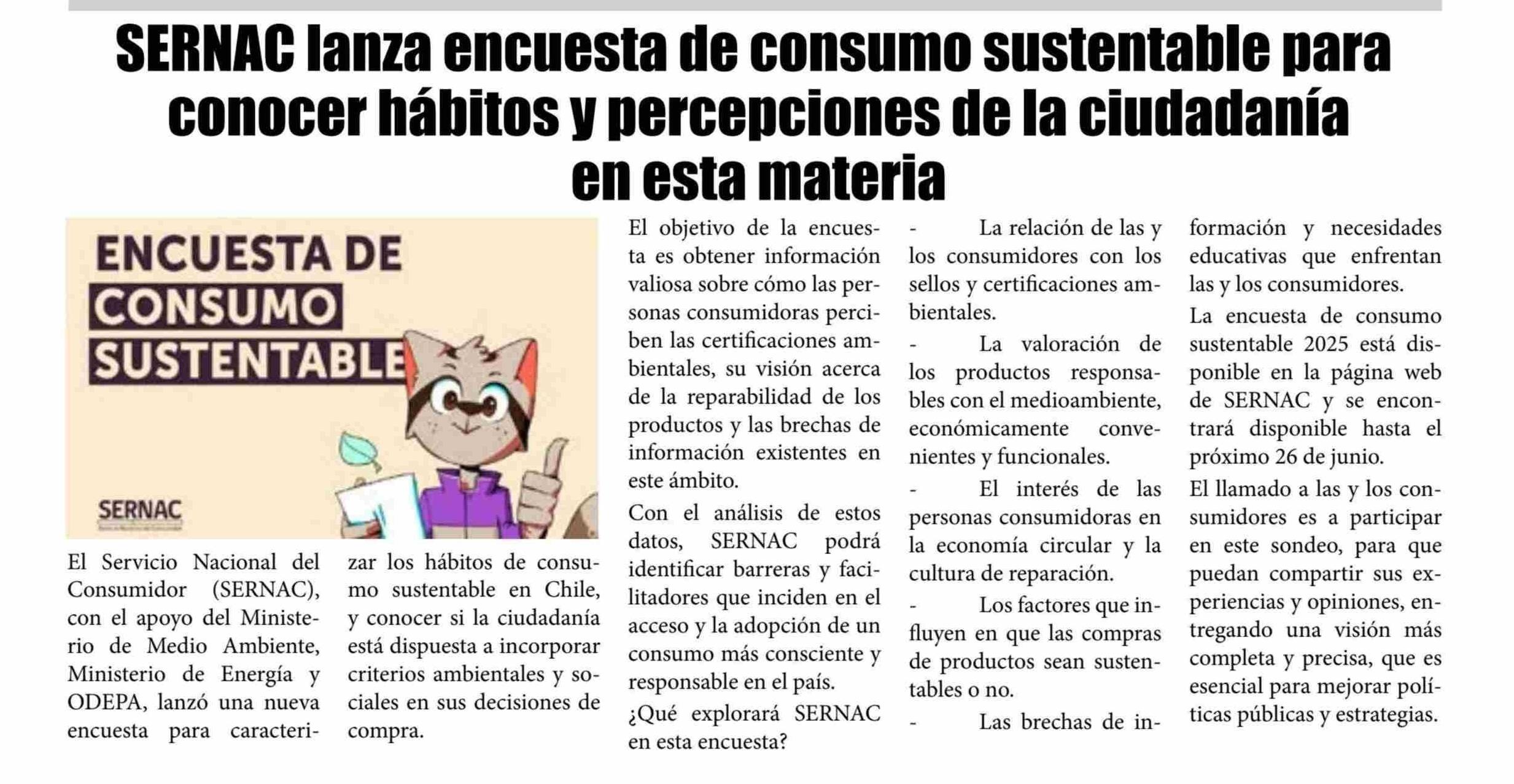 SERNAC lanza encuesta de consumo sustentable para conocer hábitos y percepciones de la ciudadanía en esta materia 07-06-2025 El Lector |