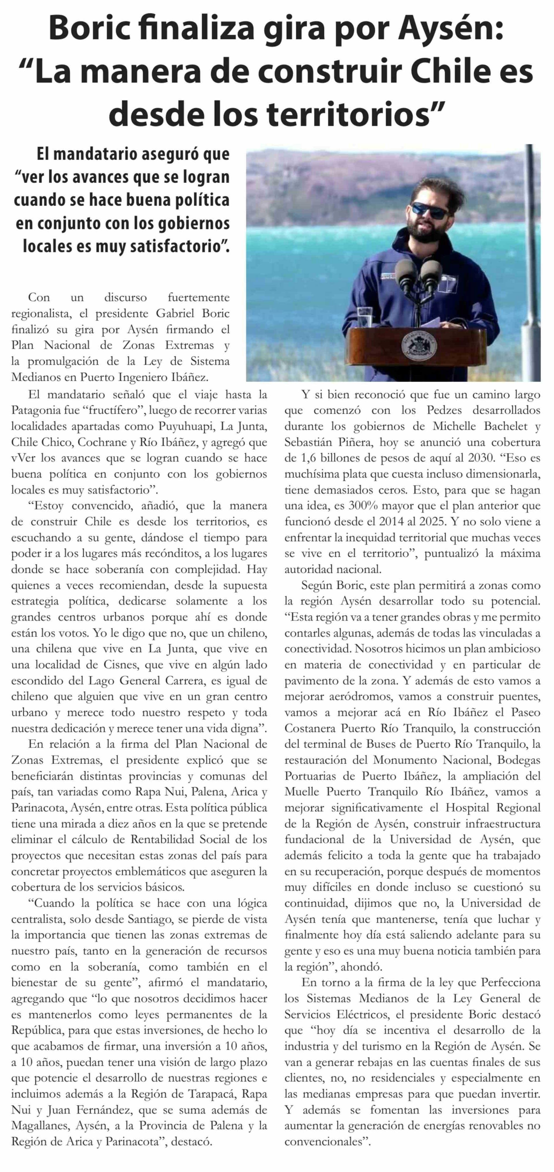 Título: Boric finaliza gira por Aysén: "La manera de construir Chile es desde los territorios"