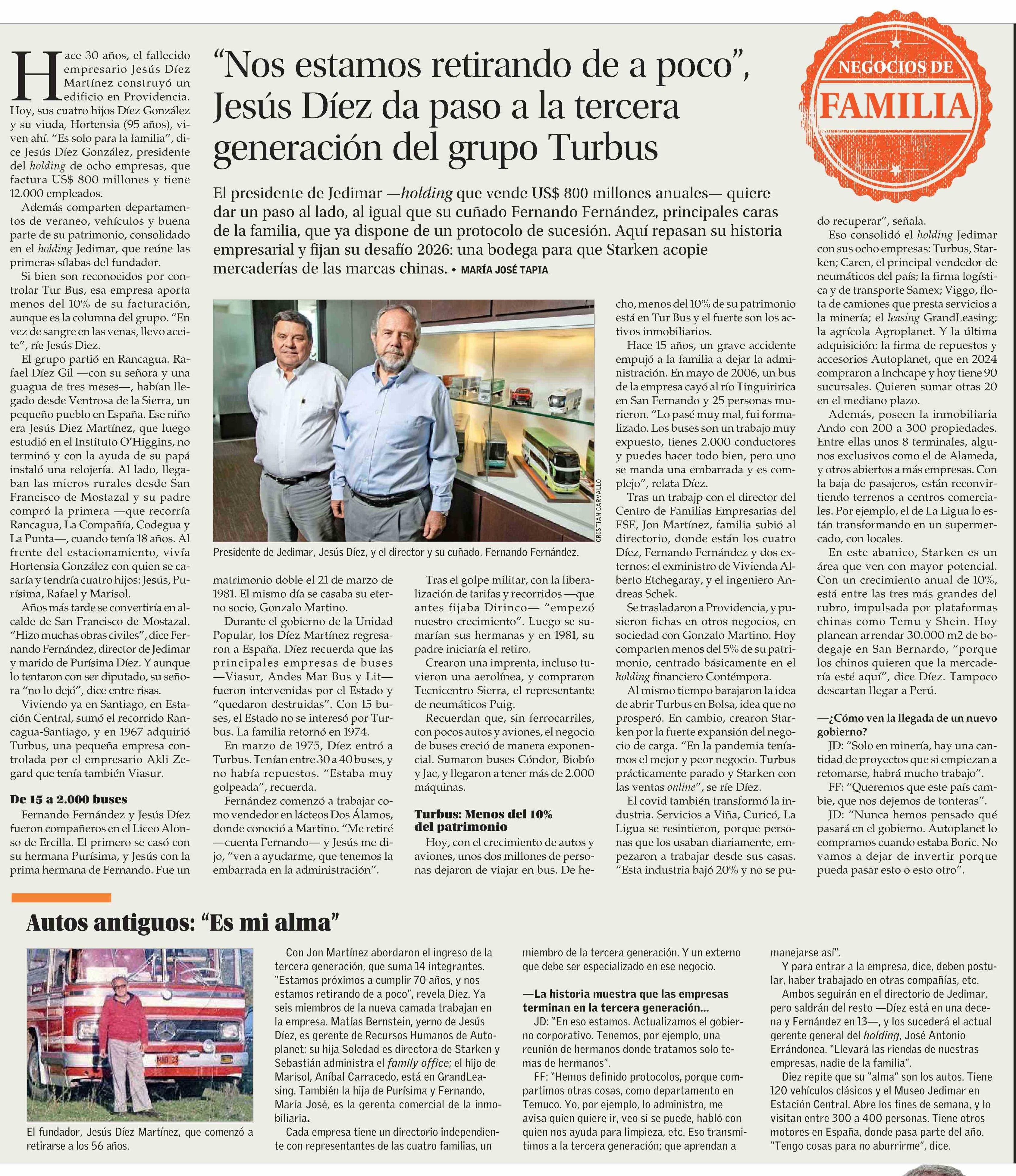 “Nos estamos retirando de a poco”, Jesús Díez da paso a la tercera generación del grupo Turbus 08-03-2026 El Mercurio |