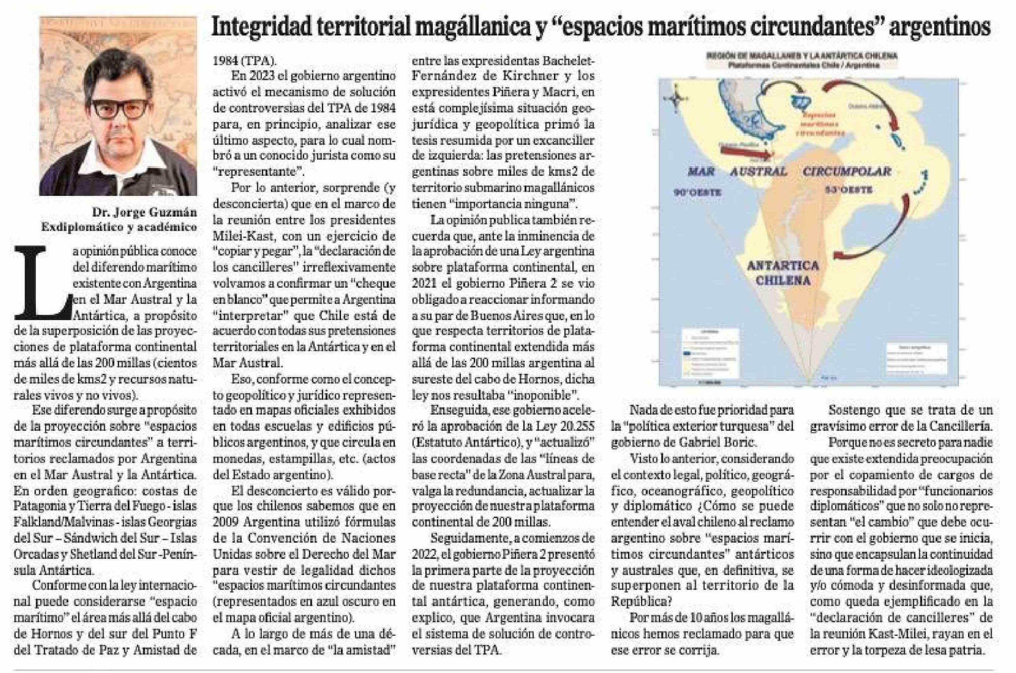 Columnas de Opinión: Integridad territorial magállanica y "espacios marítimos circundantes" argentinos
