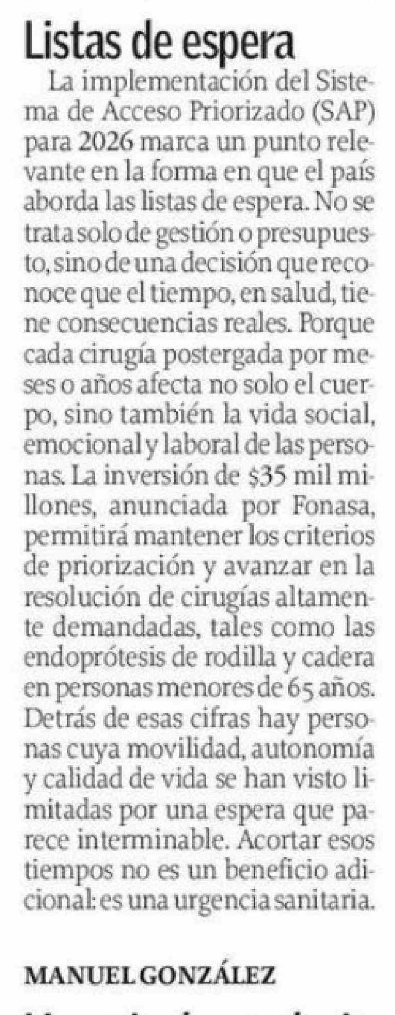 Cartas: Listas de espera La implementación del Siste- 03-02-2026 El Sur |