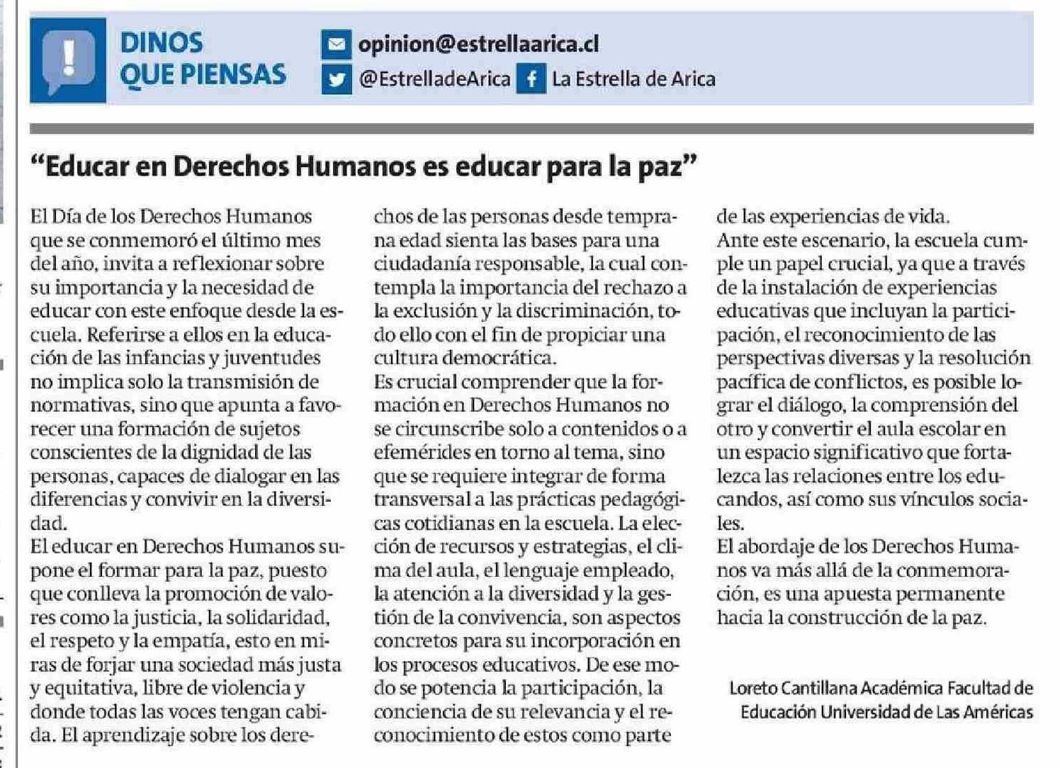 Cartas: "Educar en Derechos Humanos es educar para la paz"