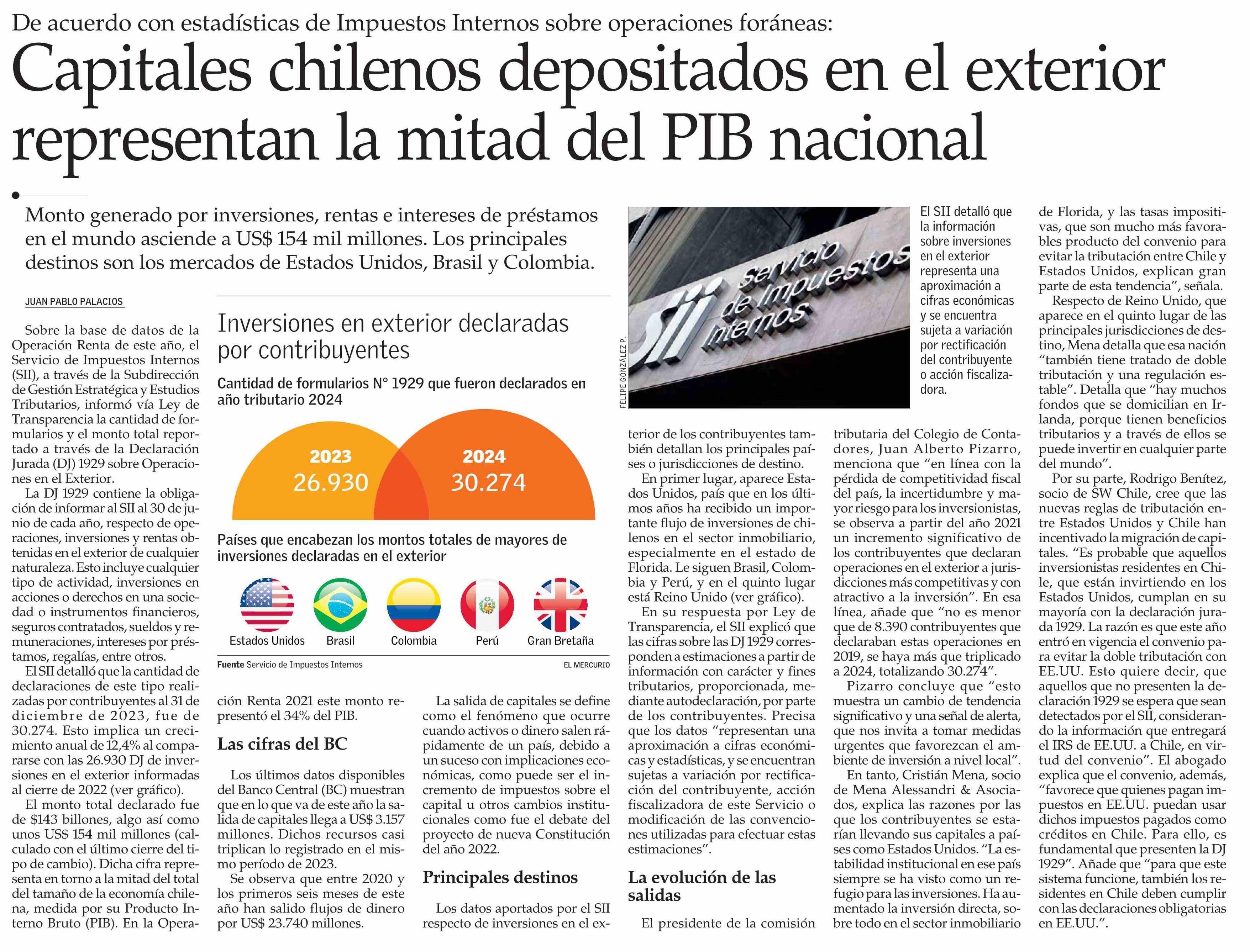 Capitales chilenos depositados en el exterior representan la mitad del PIB nacional 23-09-2024 El Mercurio |