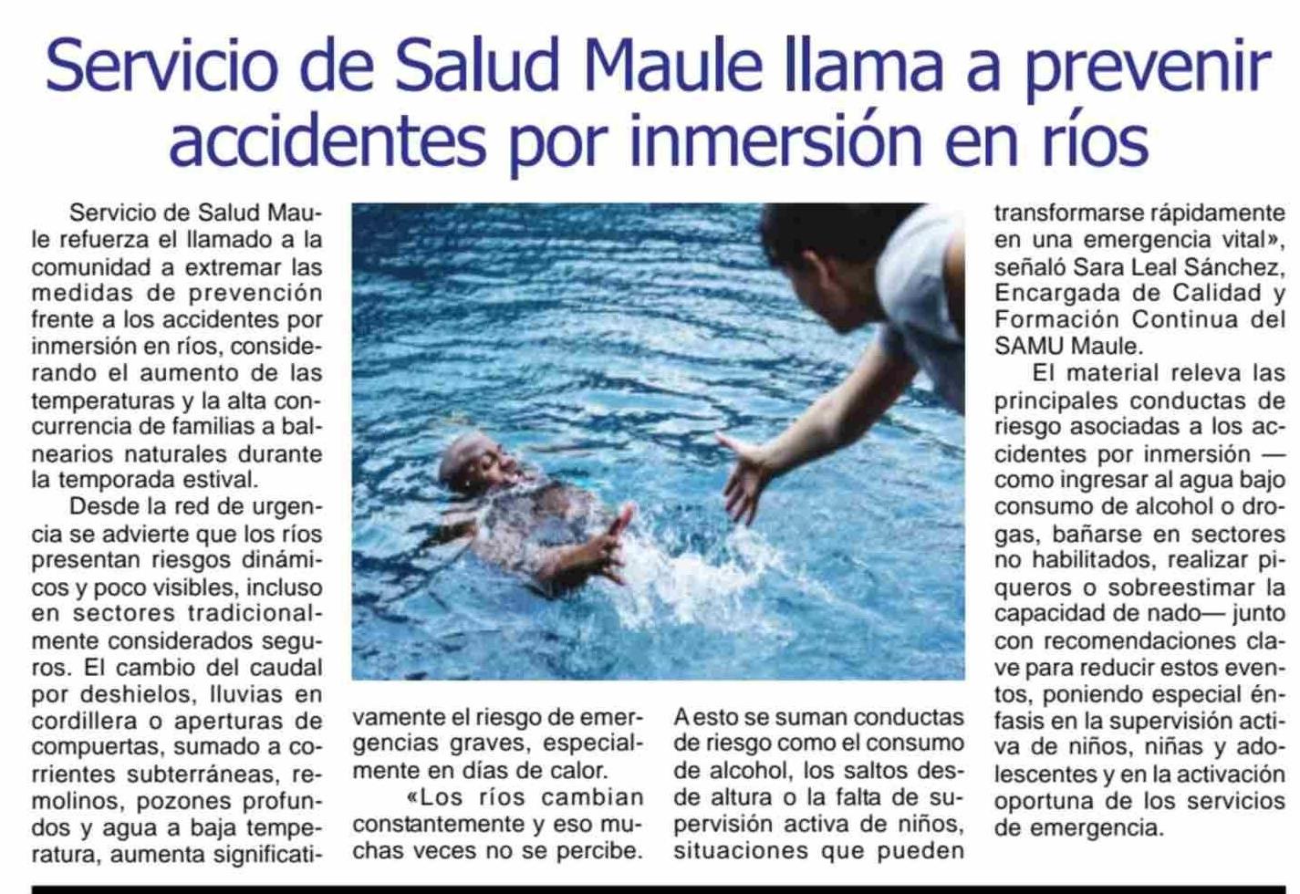 Servicio de Salud Maule llama a prevenir accidentes por inmersión en rios 29-01-2026 Maule Hoy |