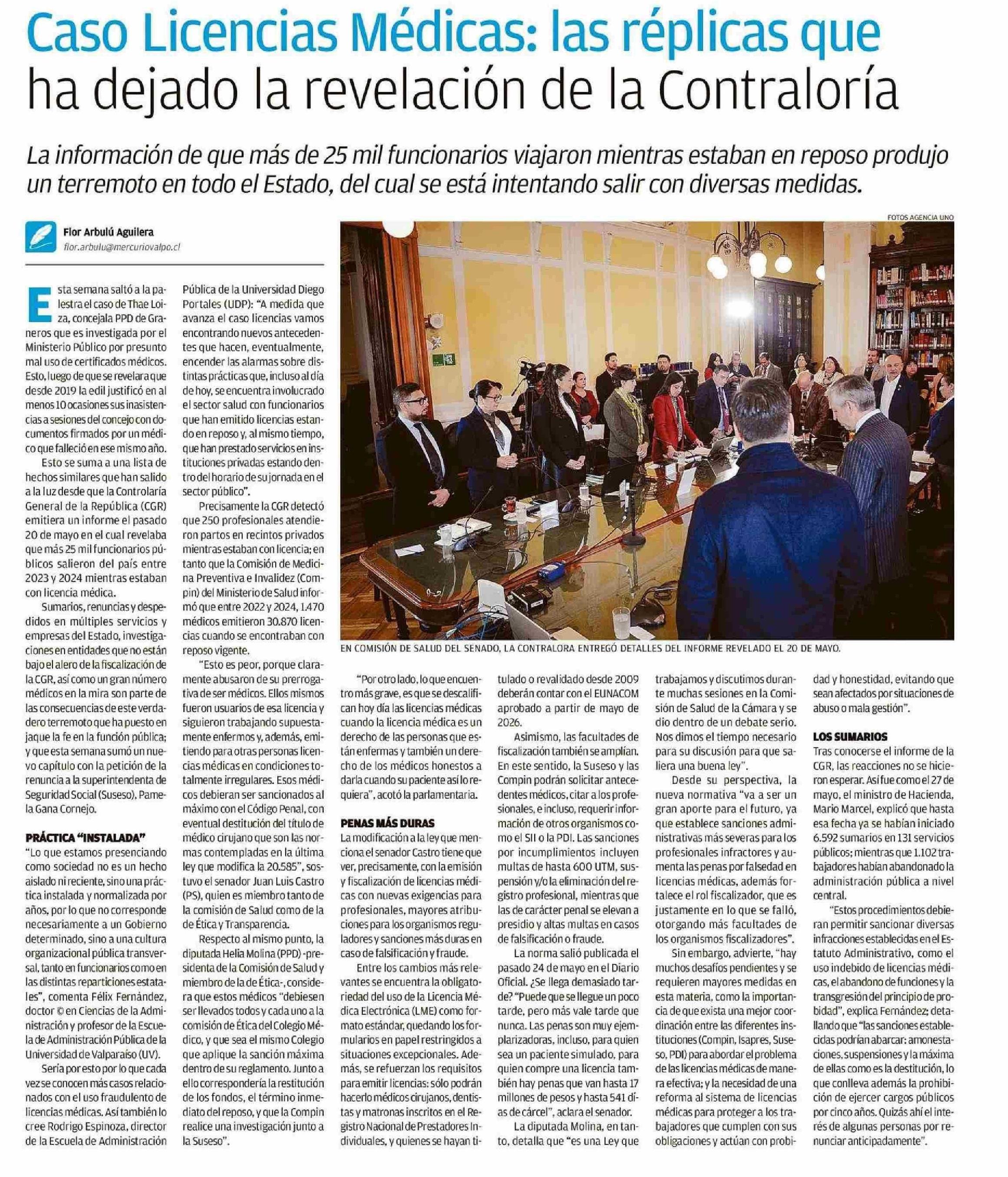 Caso Licencias Médicas: las replicas que ha dejado la revelación de la Contraloría 22-06-2025 El Mercurio de Valparaíso |