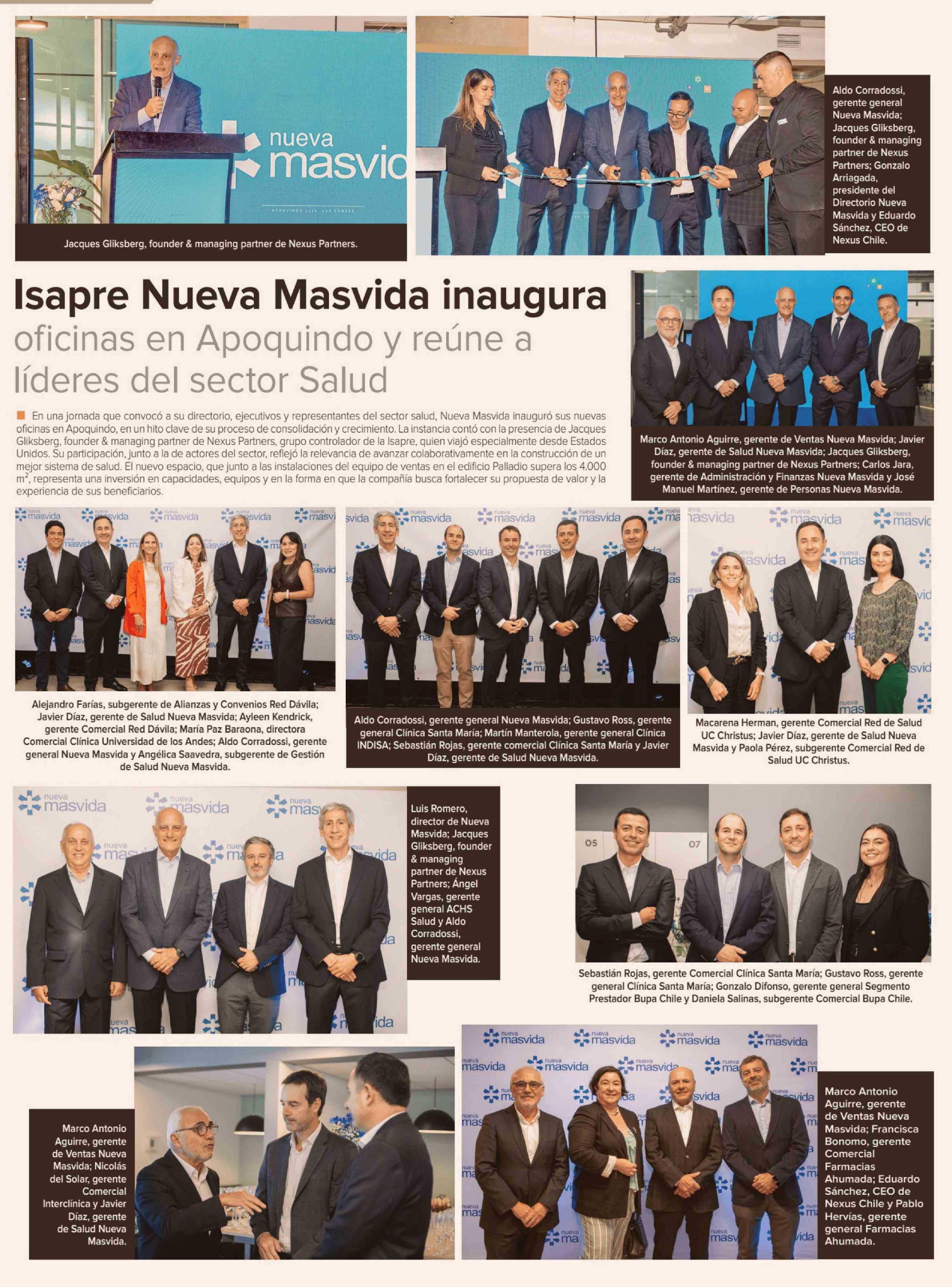 | Título: | Isapre Nueva Masvida inaugura oficinas en Apoquindo y reúne a líderes del sector Salud |