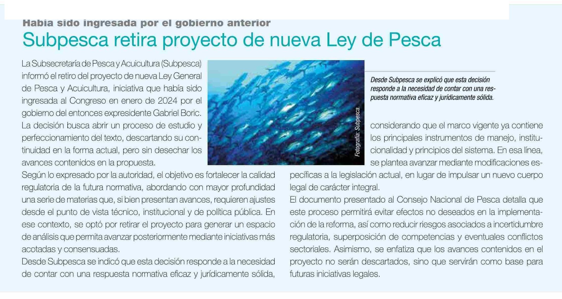 Subpesca retira proyecto de nueva Ley de Pesca 21-04-2026 Revista Aqua |