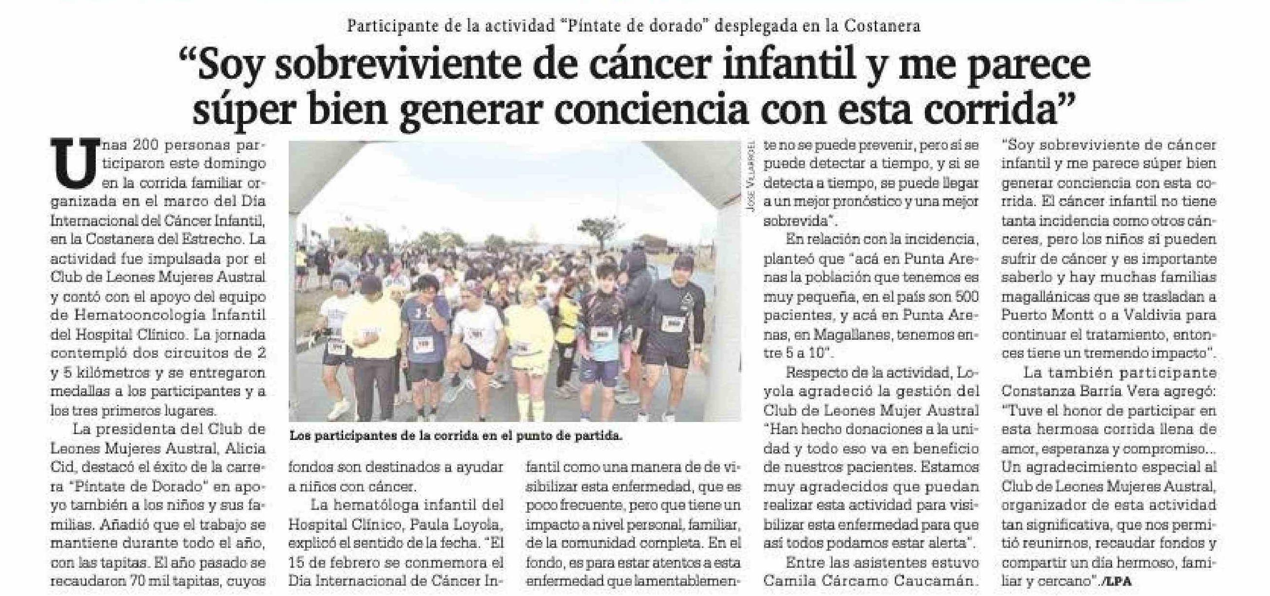 Título: “Soy sobreviviente de cáncer infantil y me parece súper bien generar conciencia con esta corrida”