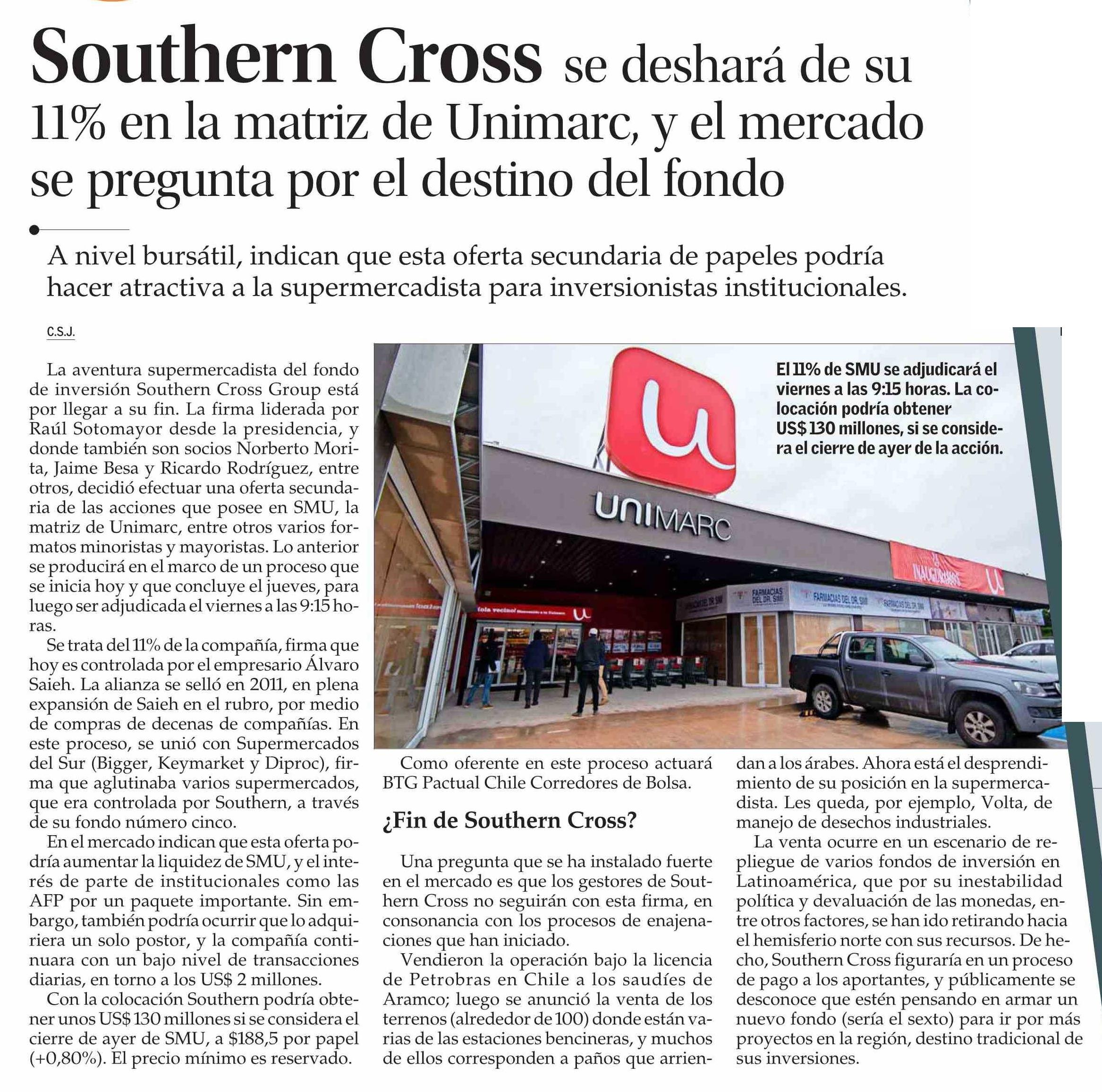Southern Cross se deshará de su 11% en la matriz de Unimarc, y el mercado se pregunta por el destino del fondo 27-05-2025 El Mercurio |