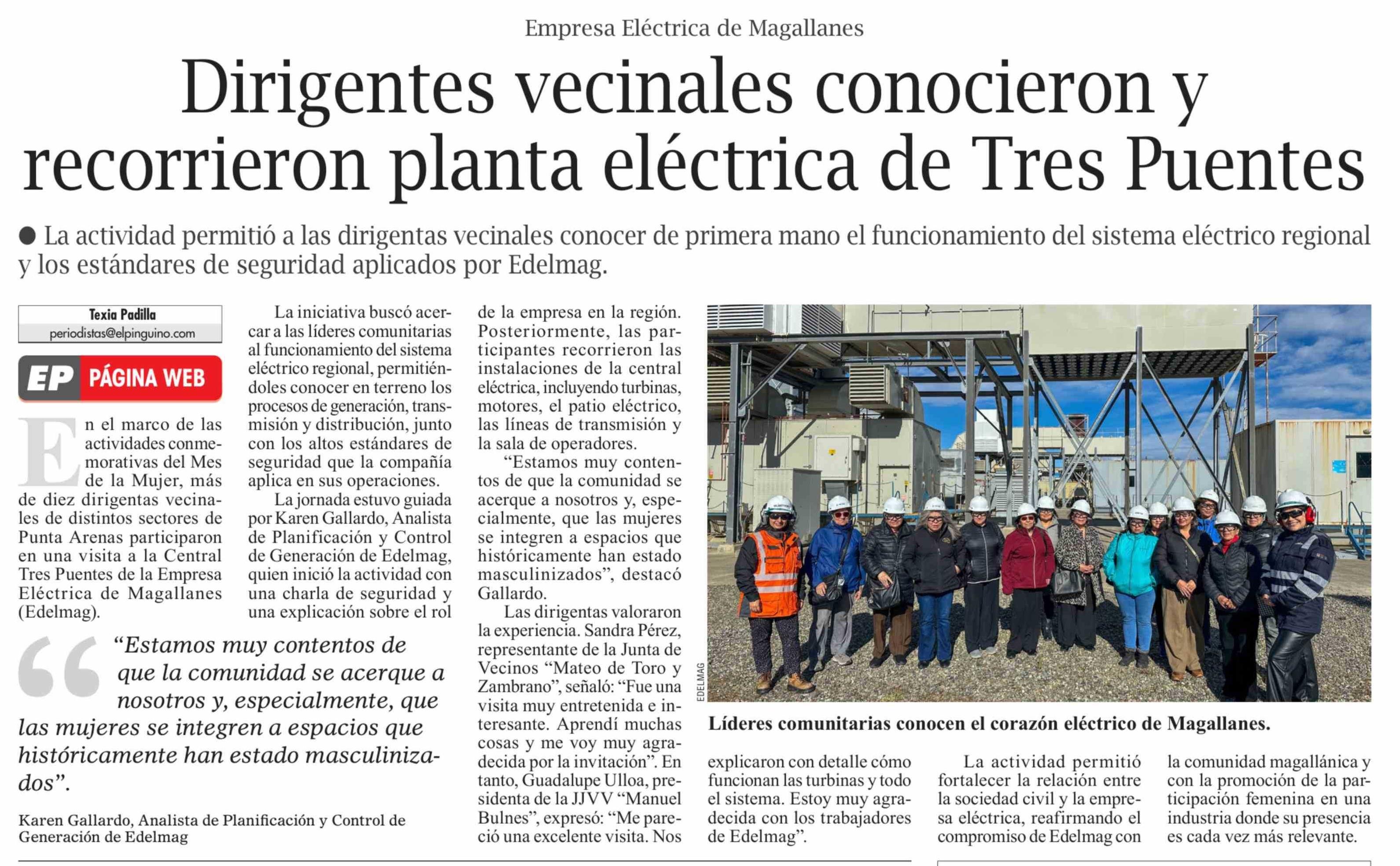 Dirigentes vecinales conocieron y recorrieron planta eléctrica de Tres Puentes
