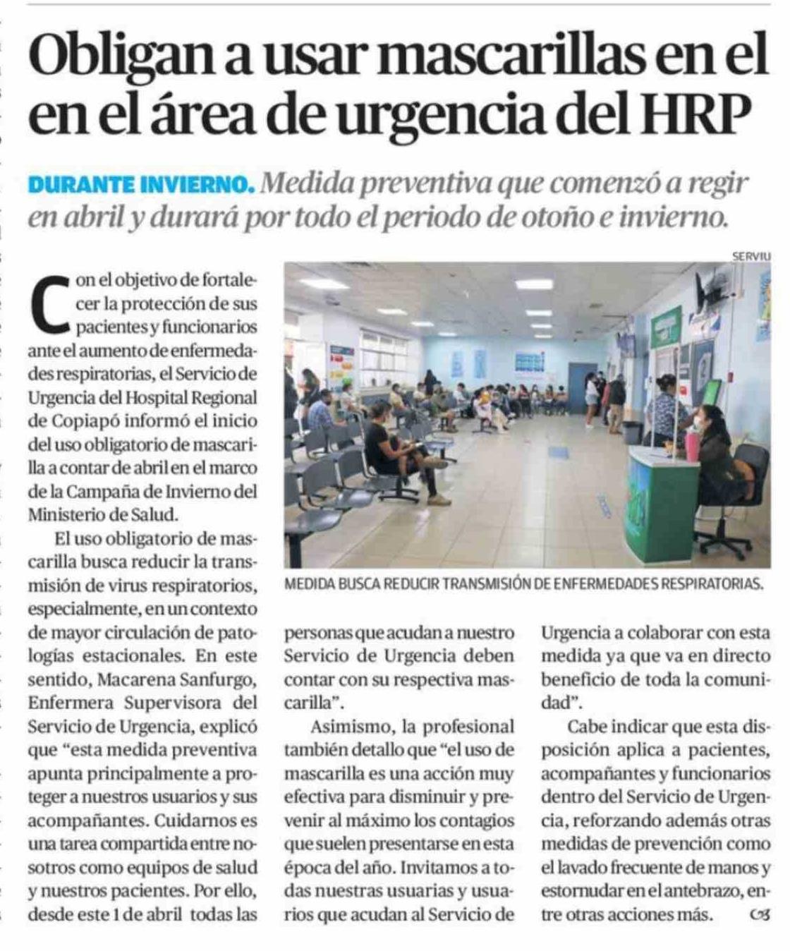 Obligan a usar mascarillas en el en el área de urgencia del HRP 05-04-2026 El Diario de Atacama |