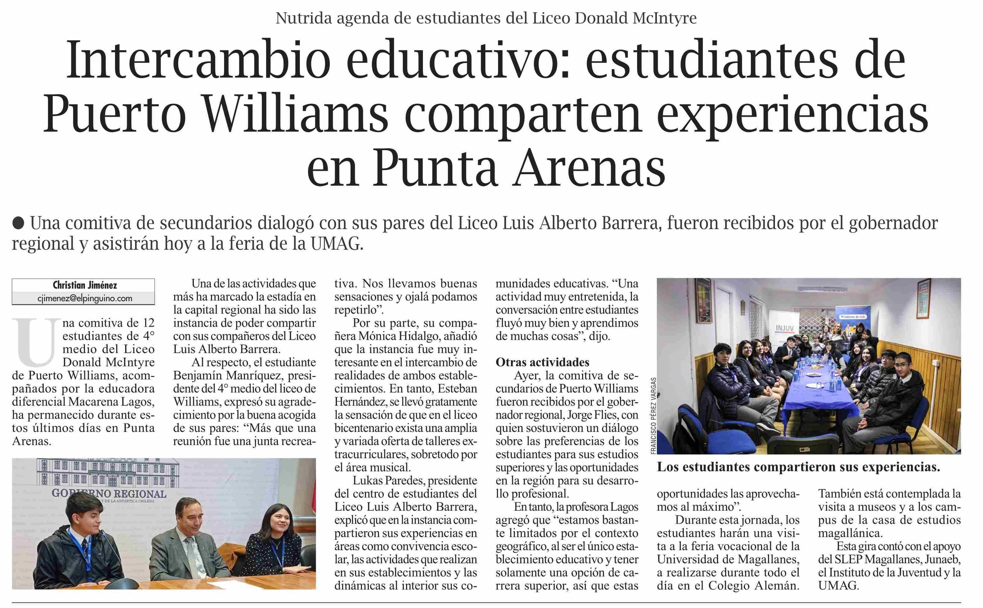 Intercambio educativo: estudiantes de Puerto Williams comparten experiencias en Punta Arenas 04-06-2025 El Pingüino |