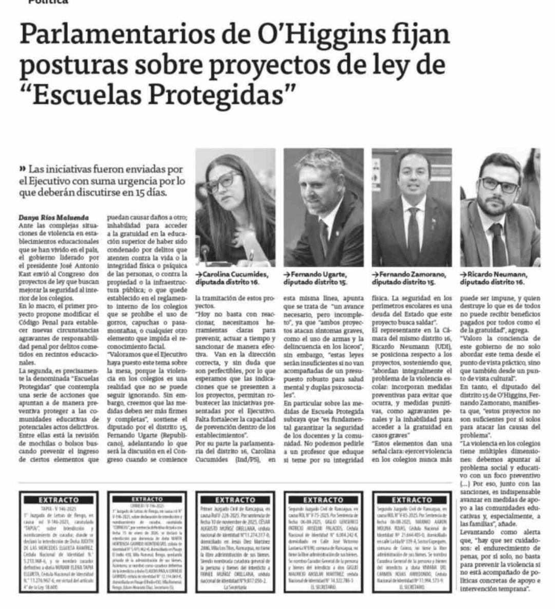 Título: Parlamentarios de O'Higgins fijan posturas sobre proyectos de ley de "Escuelas Protegidas"