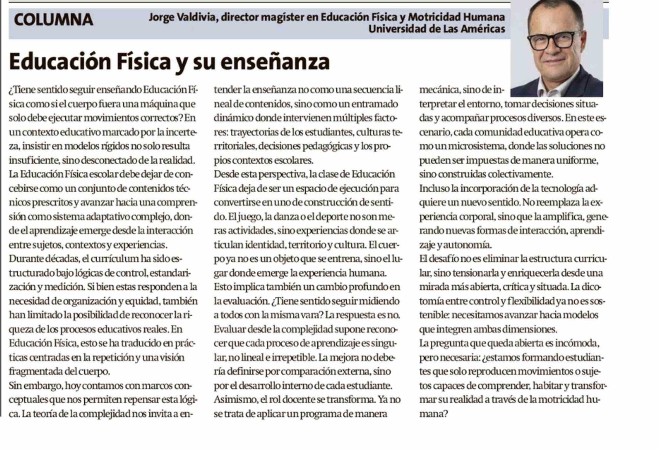 COLUMNAS DE OPINIÓN: Educación Física y su enseñanza 12-04-2026 La Estrella de Chiloé |