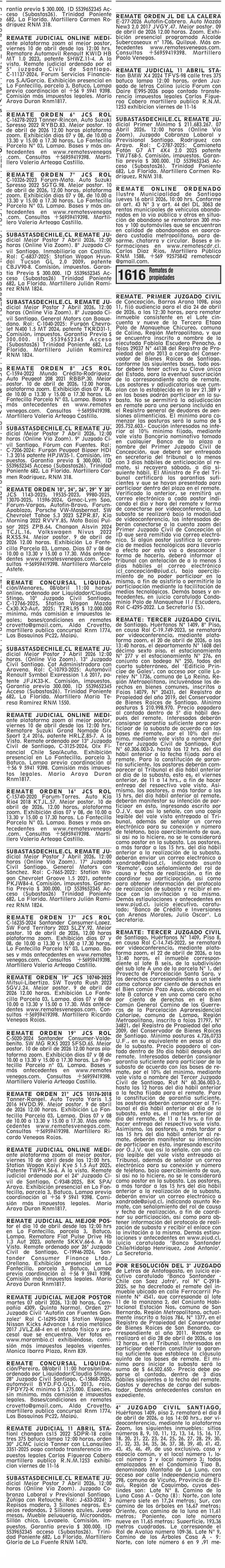 REMATES: 1612 Remates 06-04-2026 El Mercurio |