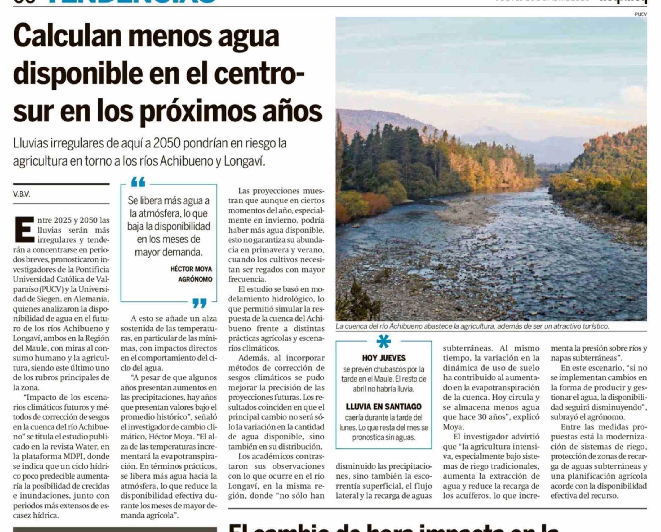 Título: Calculan menos agua disponible en el centrosur en los próximos años