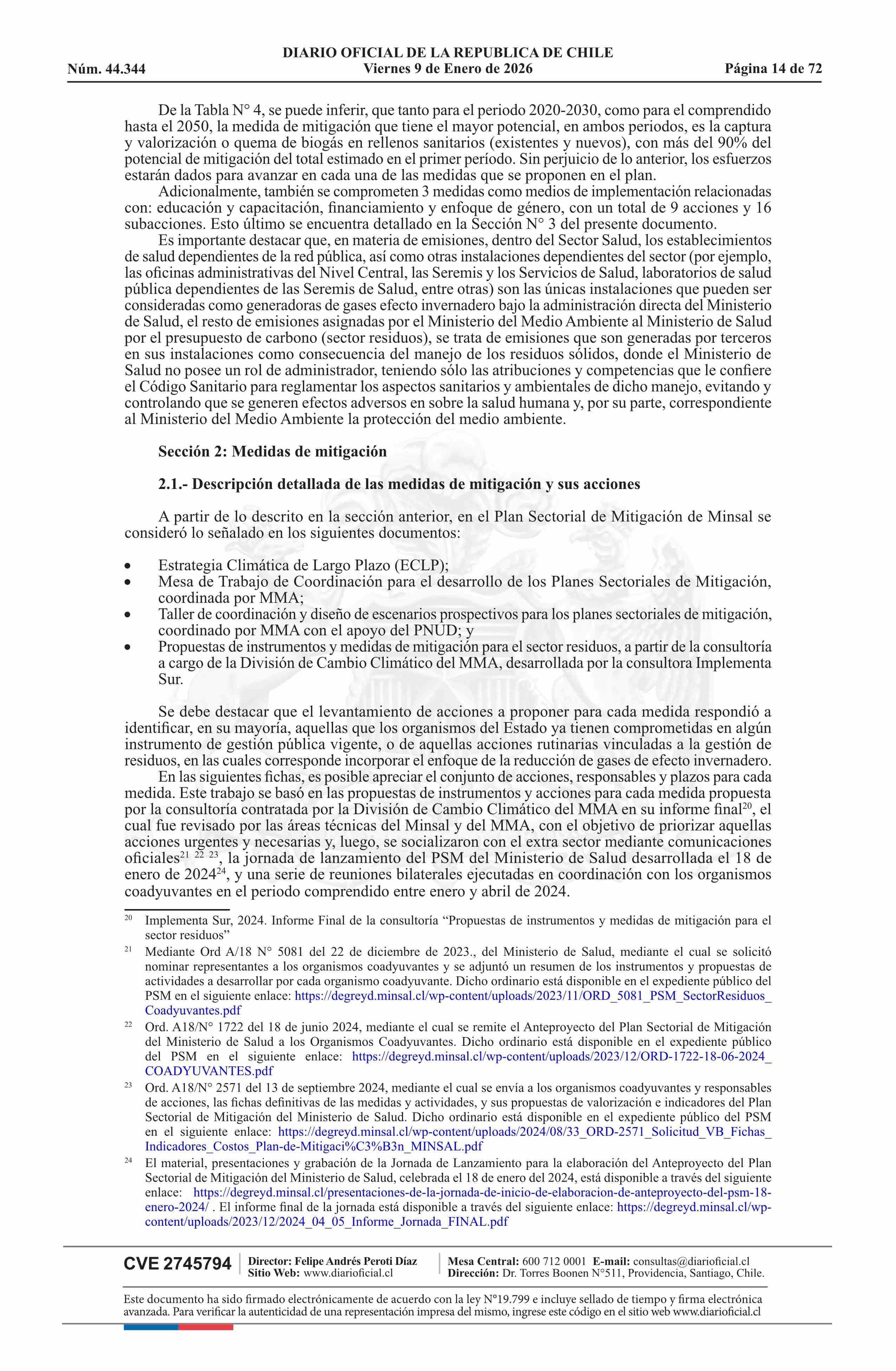 Título: Decreto número 48, de 2024.- Aprueba Plan Sectorial de Mitigación del Cambio Climático del Ministerio de Salud