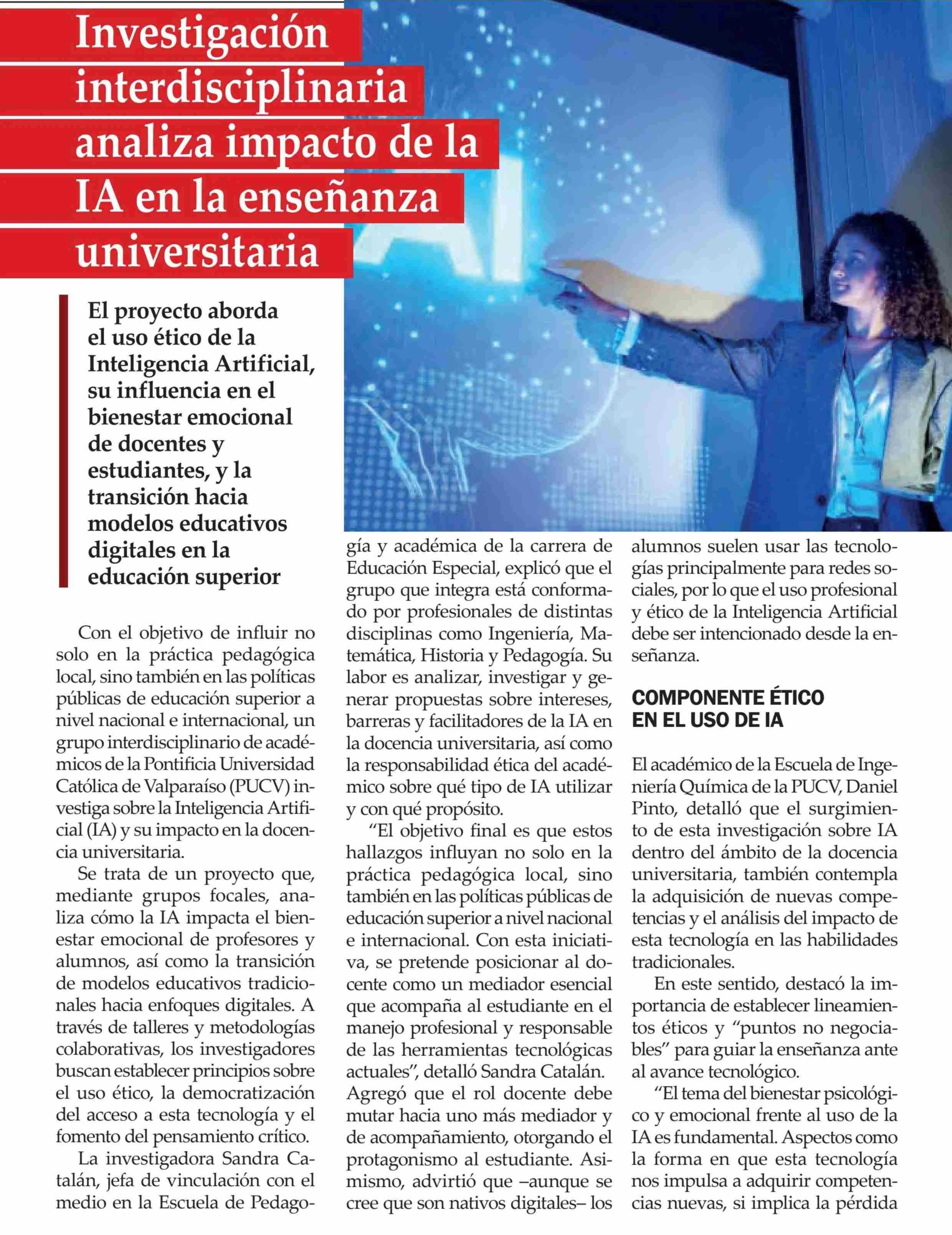 Título: Investigación interdisciplinaria analiza impacto de la IA en la enseñanza universitaria