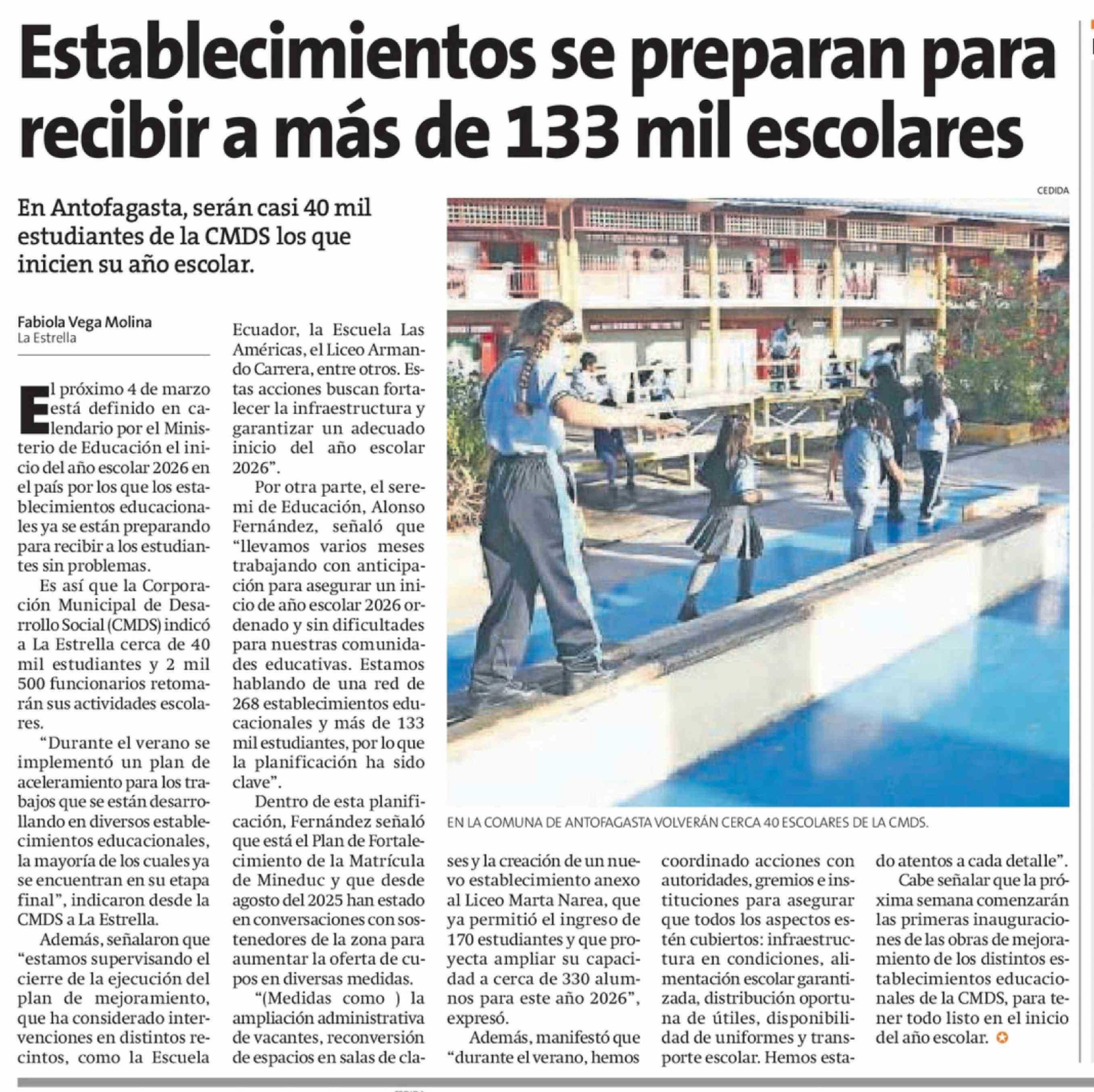 Título: Establecimientos se preparan para recibir a más de 133 mil escolares