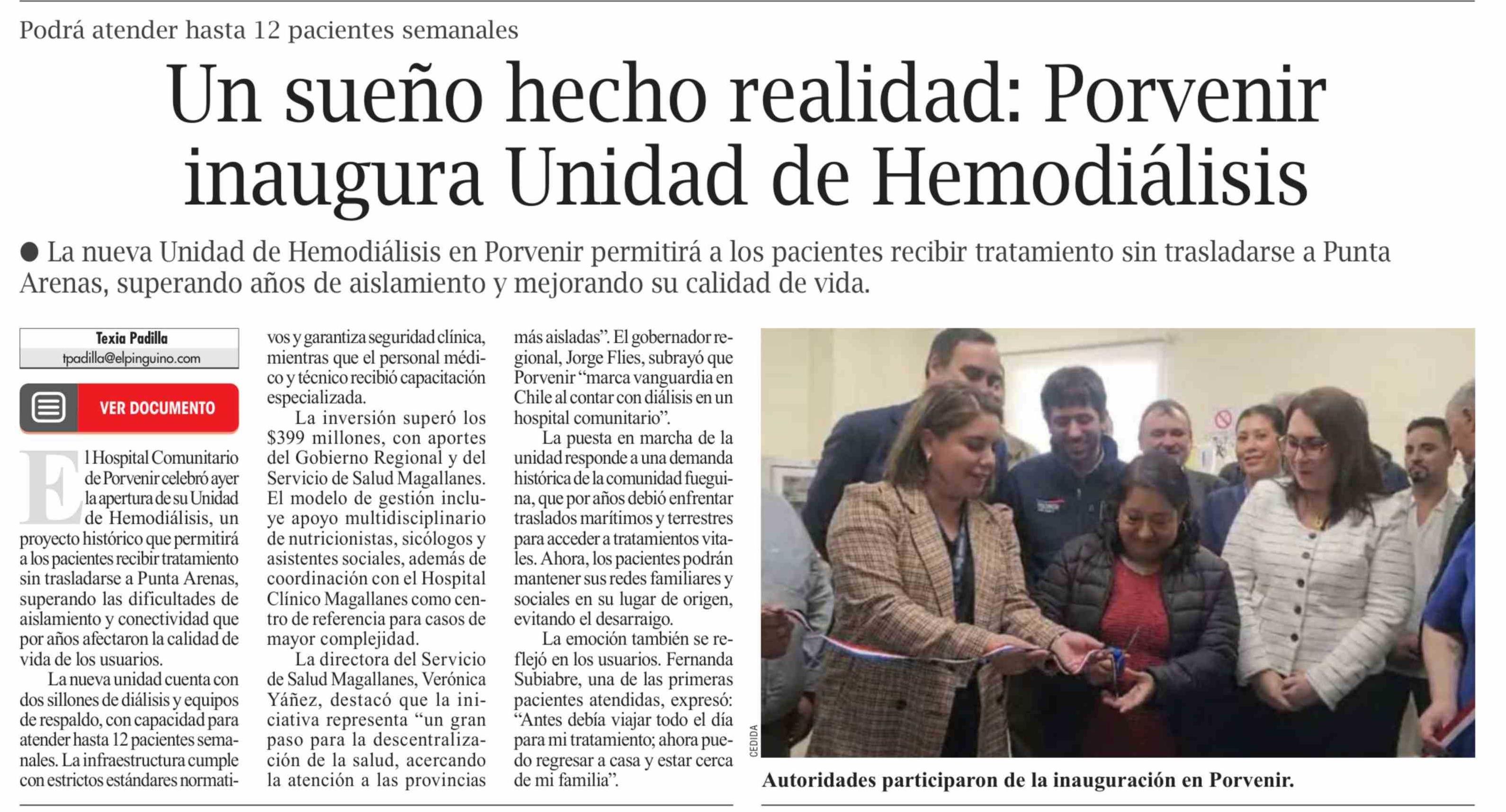 Un sueño hecho realidad: Porvenir inaugura Unidad de Hemodiálisis 08-03-2026 El Pingüino |